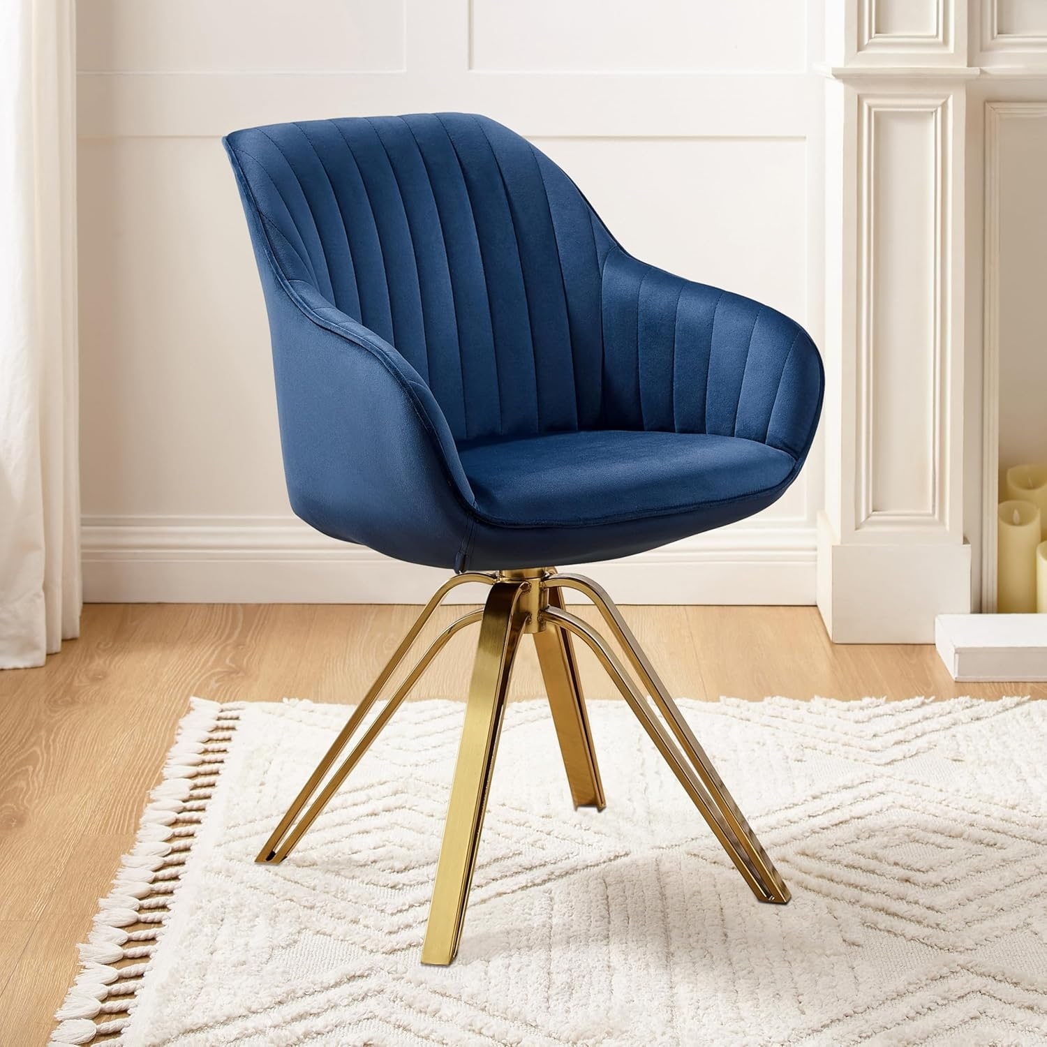 Mid Century Modern Swivel Accent Chair, Fabric Upholstered Armchair with Gold Legs, Ergonomic Desk Chair for Bedroom