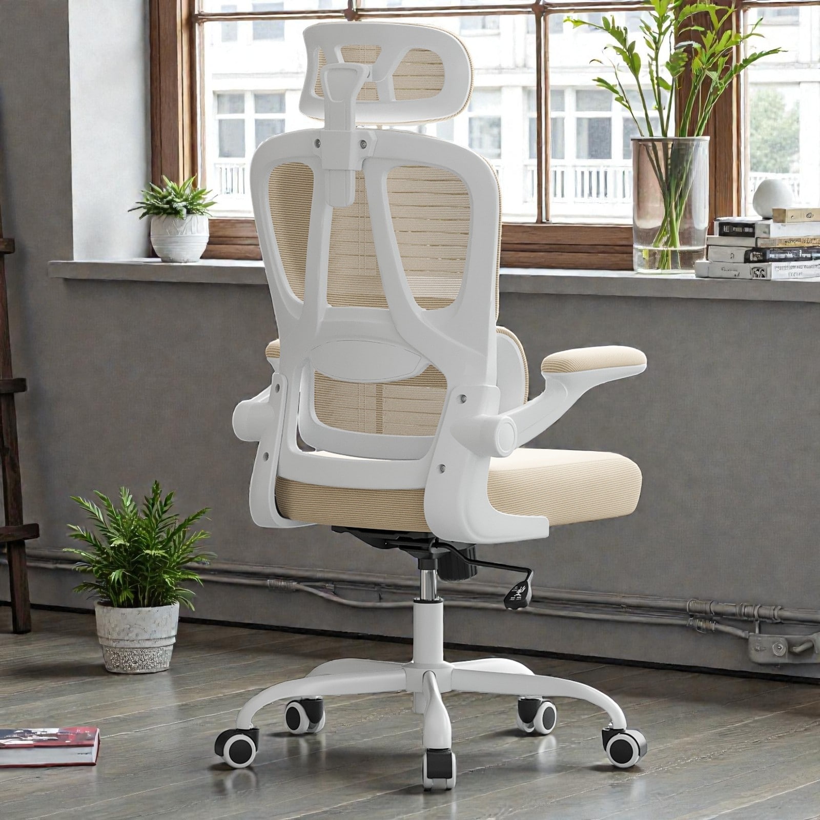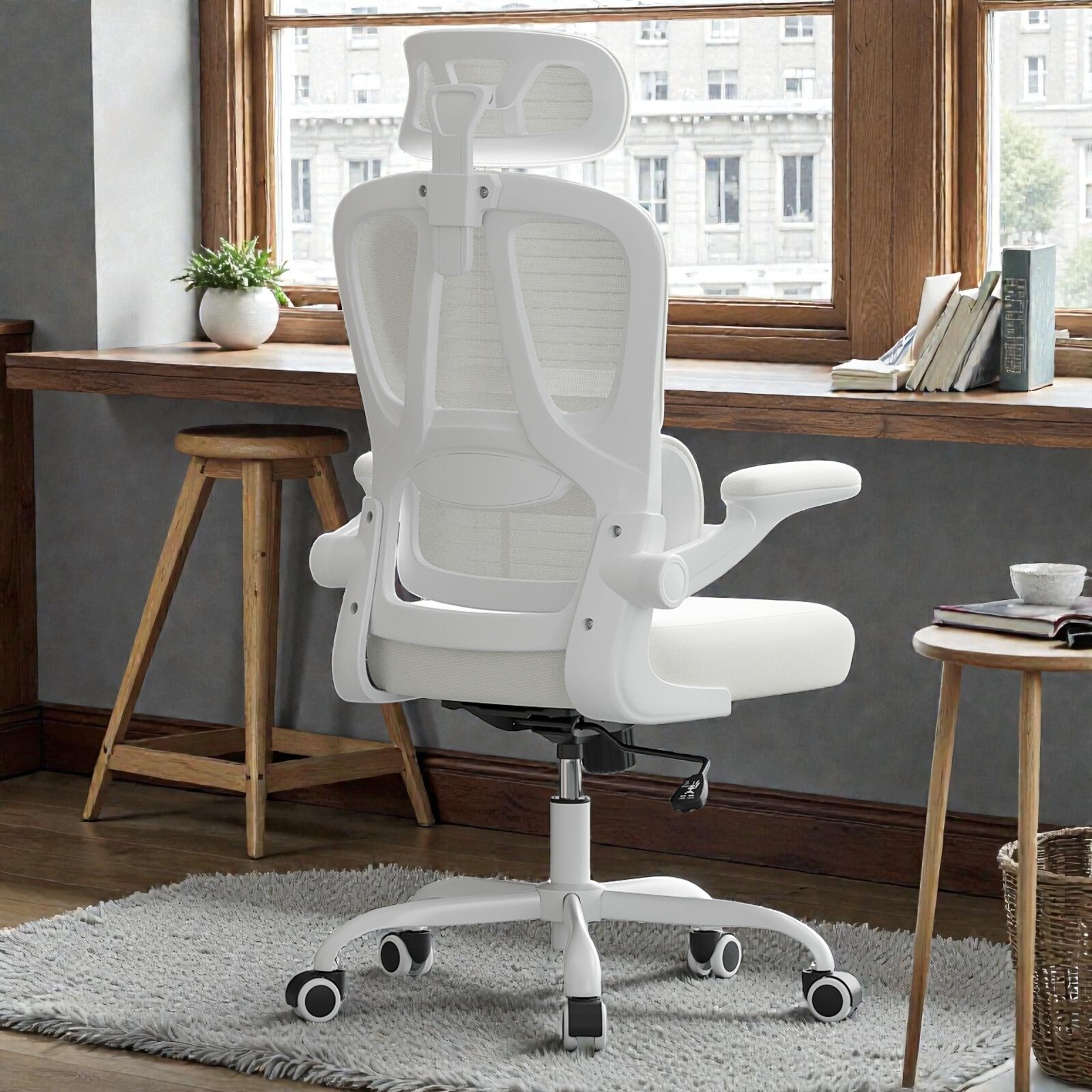 Modern Mesh Office Chair with Flip-Up Arms, Ergonomic Support, and Synchronized Tilt