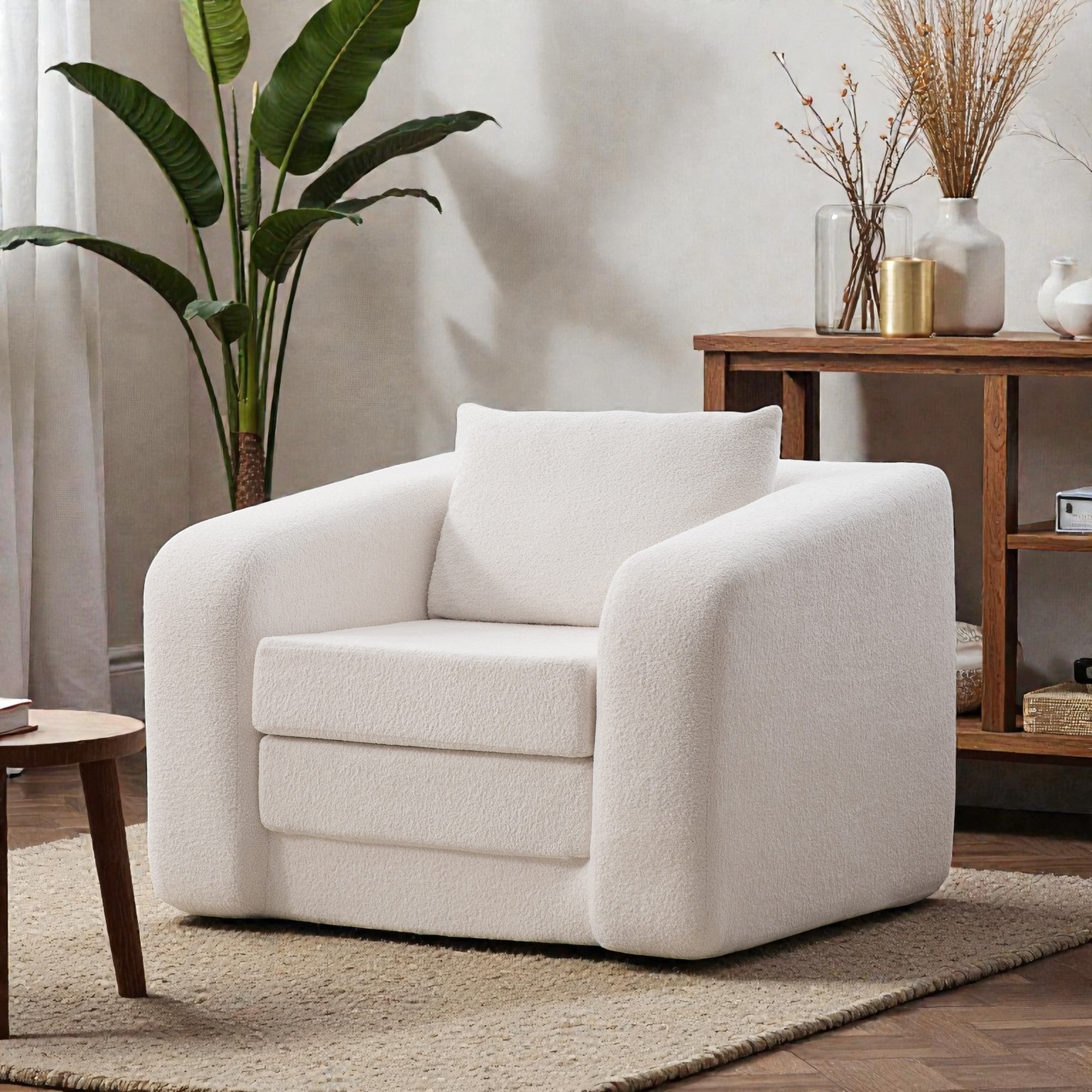 40 Inch Foldable Accent Chair Sofa Bed, Convertible Chenille Single Sleeper Chair with Armrest Backrest and Pillow,Lounge Chair