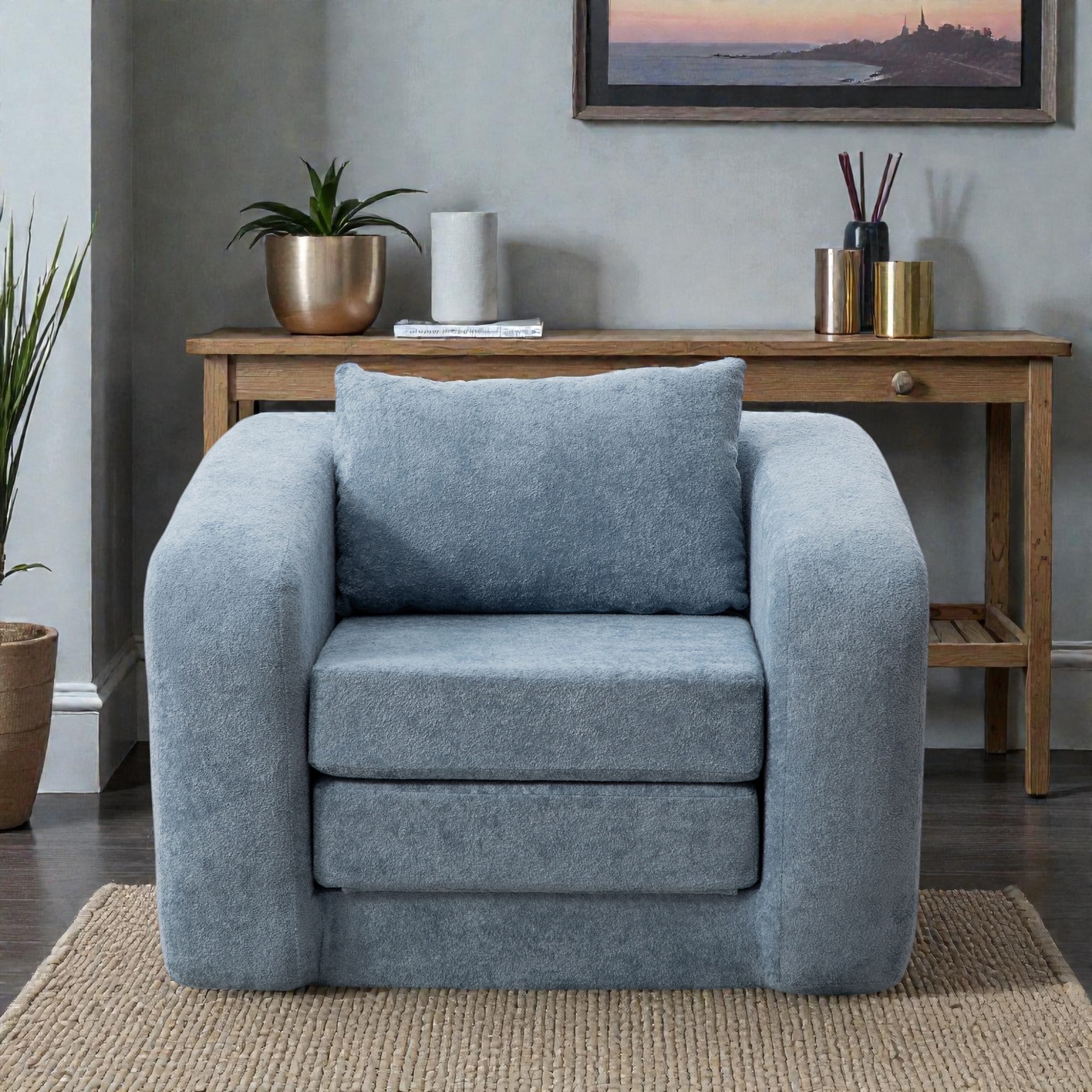 40 Inch Foldable Accent Chair Sofa Bed, Convertible Chenille Single Sleeper Chair with Armrest Backrest and Pillow,Lounge Chair