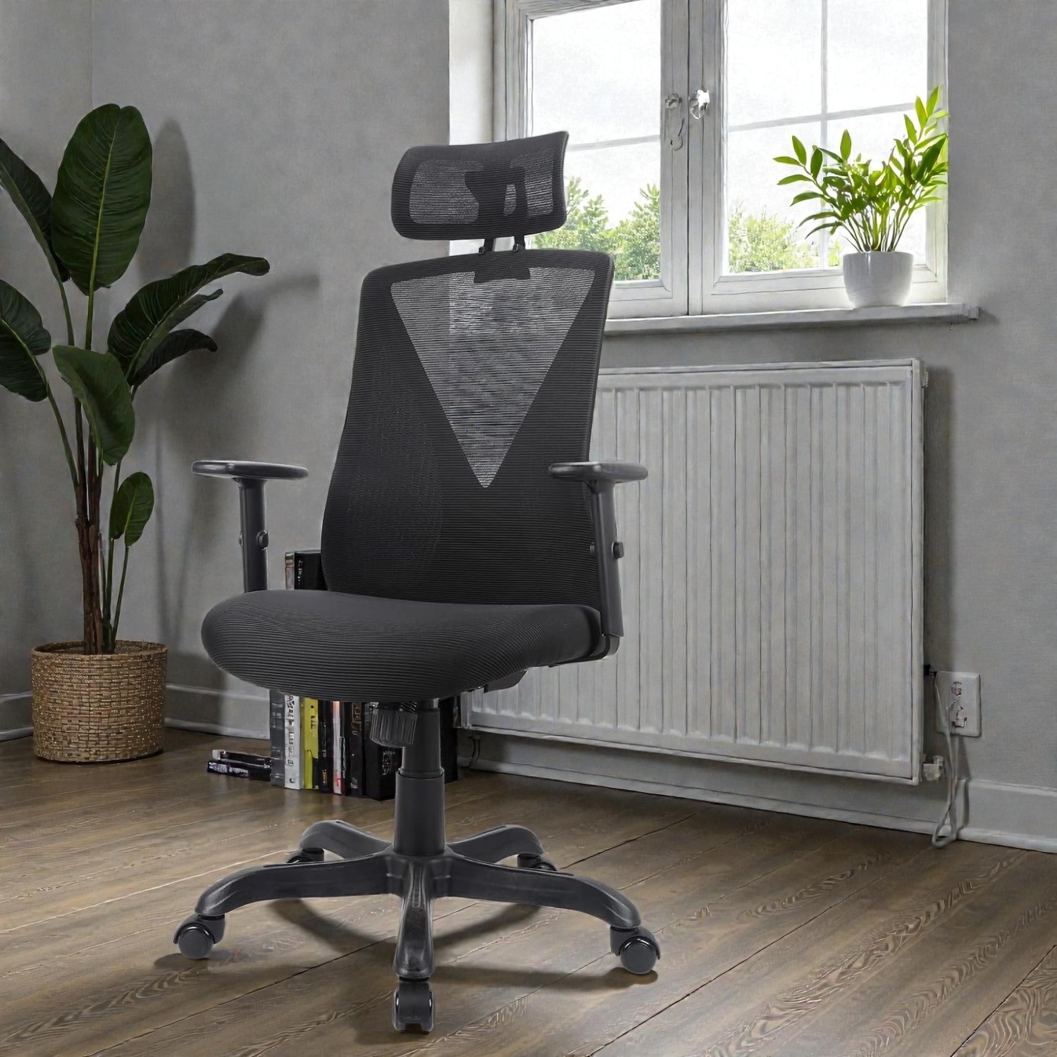 Ergonomic Mesh Office Chair with Adjustable Headrest and Armrests, Swivel Desk Chair with Back Storage, Accent Chair for Work