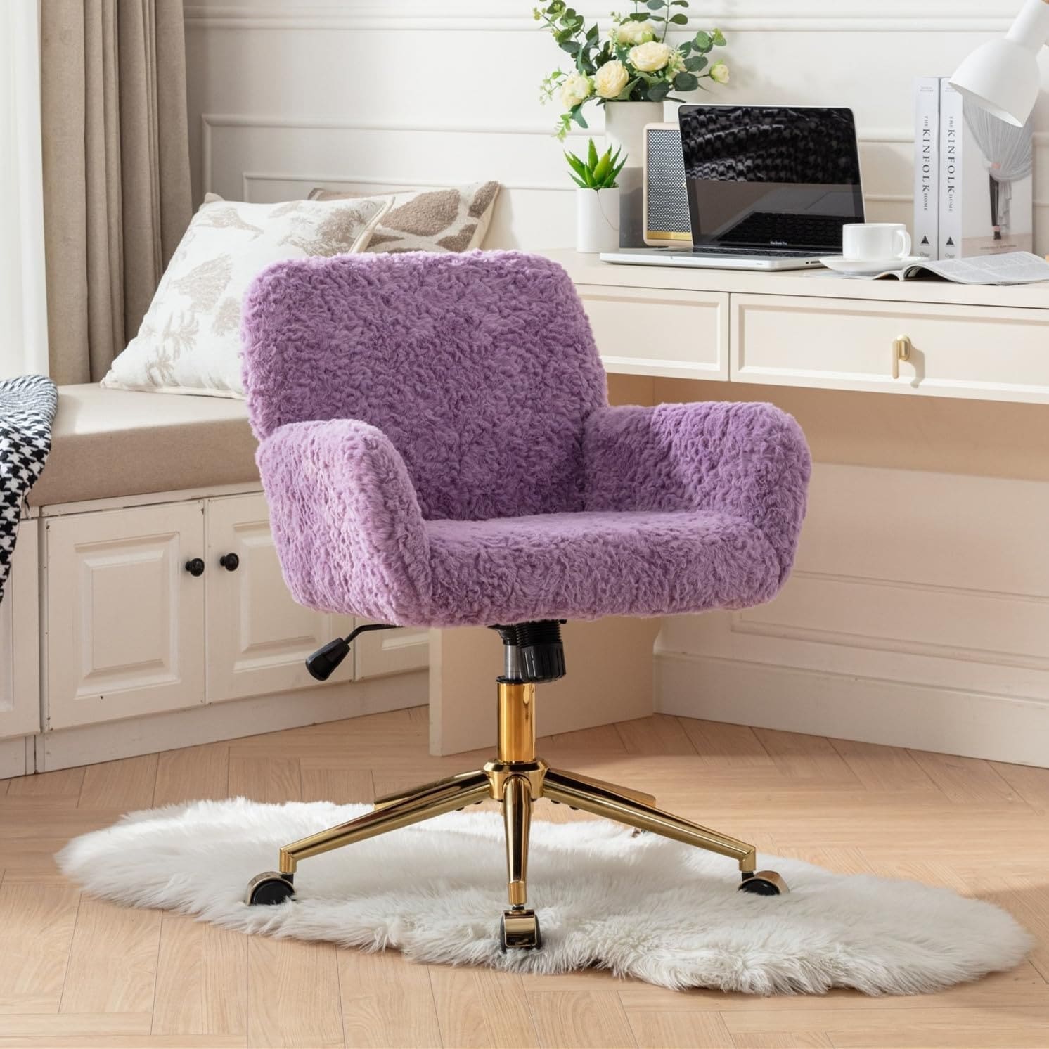 Elegant Purple Faux Fur Swivel Office Chair with Adjustable Height and Armrests