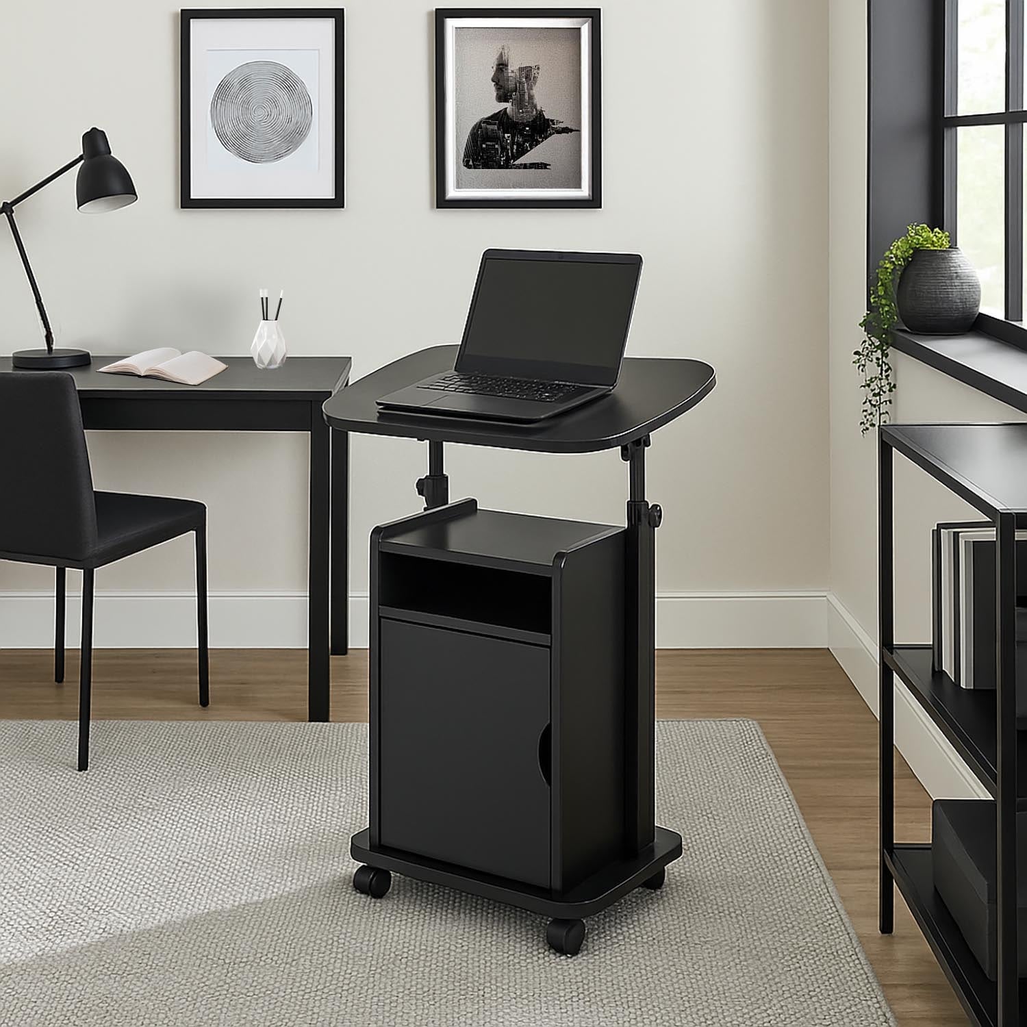 Rolling Laptop Cart Sit-to-Stand with Adjustable Height & Storage