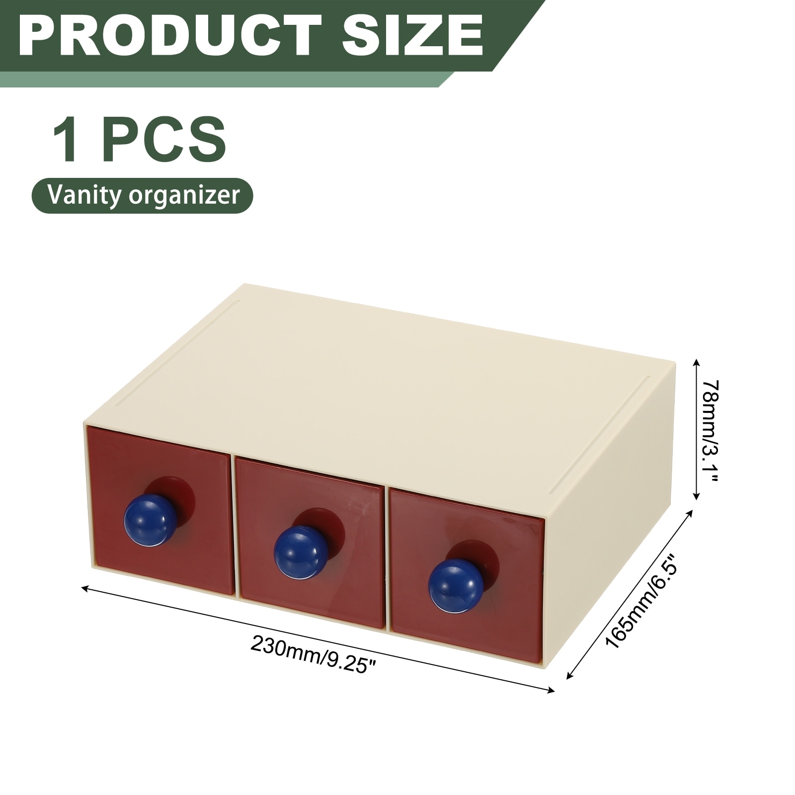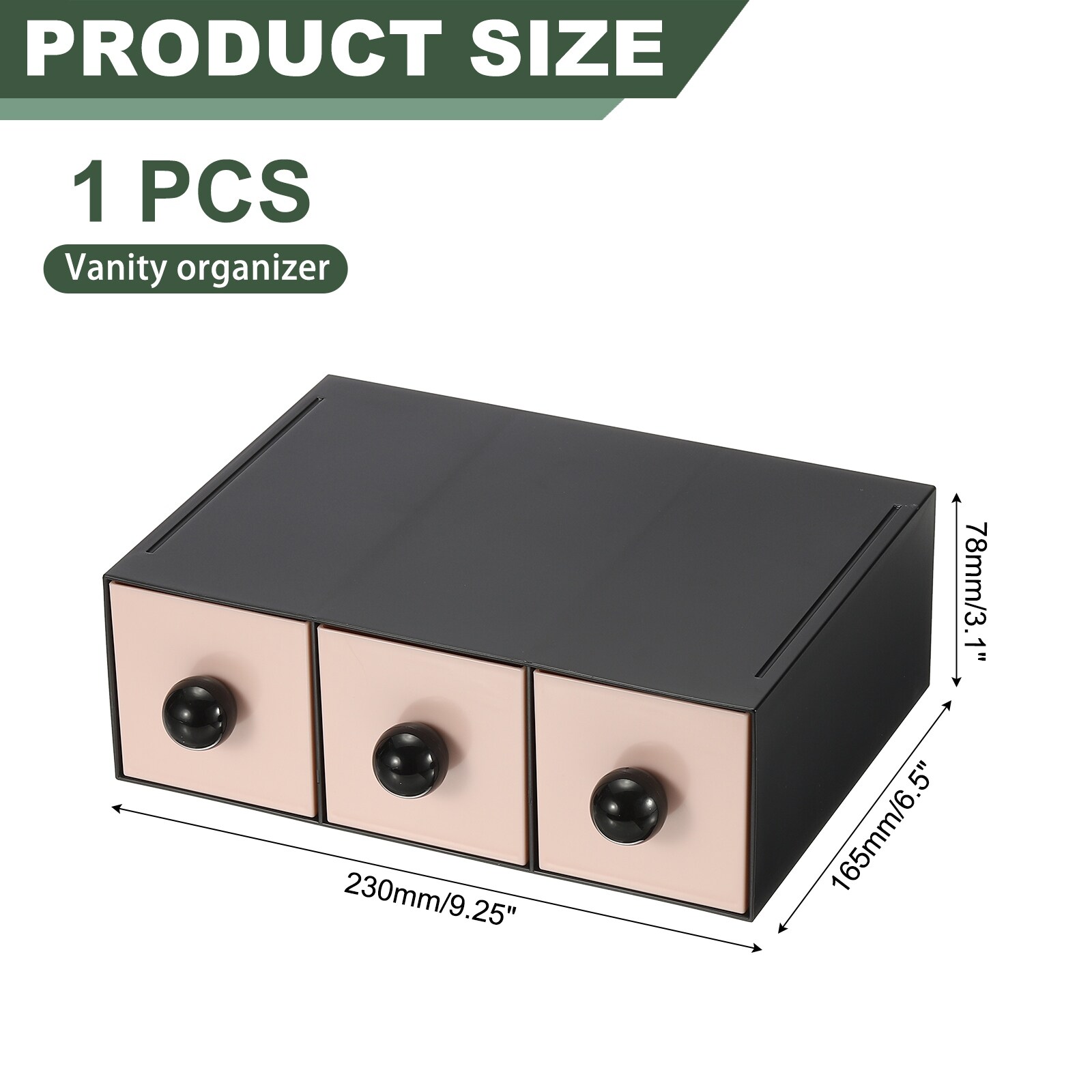Stackable Drawer with 3 Drawers, Bathroom Storage Organizer Makeup Organizer for Vanity, Bathroom