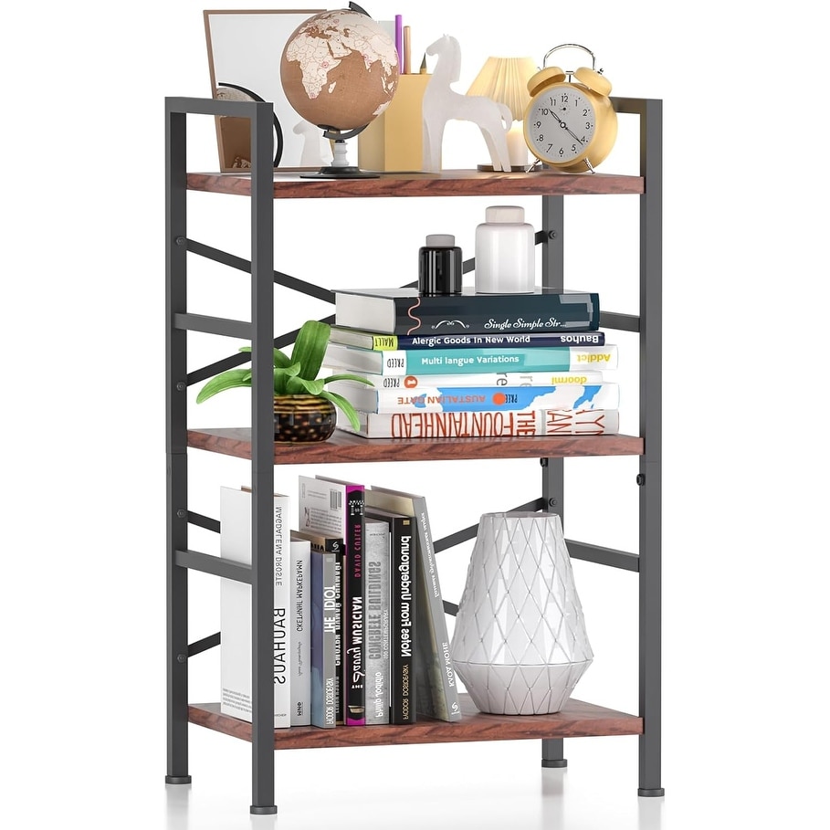 3-Tier Industrial Bookcase, Rustic Open Shelf, Freestanding Horizontal Bookshelves with Metal Frame