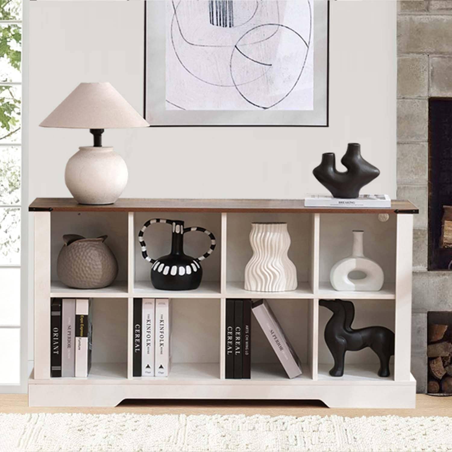 5-Tier Farmhouse Bookcase with Barn Doors, Adjustable Shelves & Storage Cabinet for Living Room, Bedroom