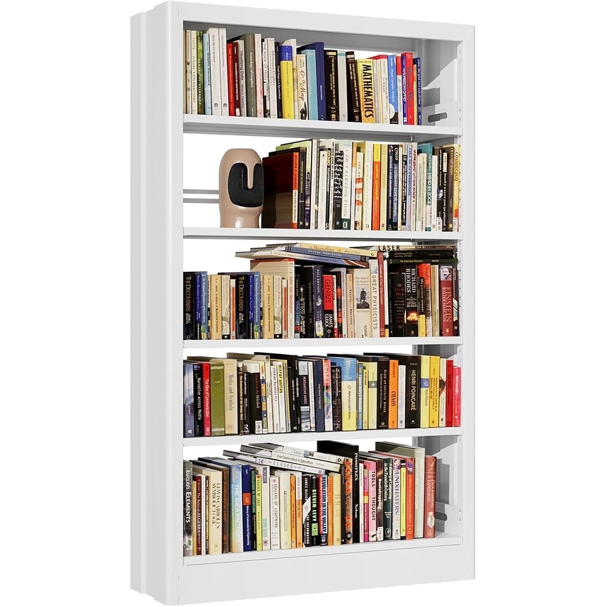 5-Tier Adjustable Metal Bookshelf, White, Heavy Duty, Modern Design for Living Room, Bedroom, Office