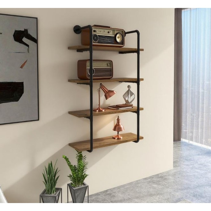 Rack Industrial Pipe Shelves Floating Wall Mounted Bookshelf, Metal Frame Display Rack