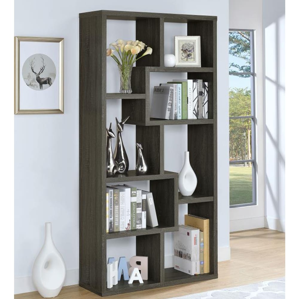 Rectangular 10-shelf Bookcase in Weathered Grey