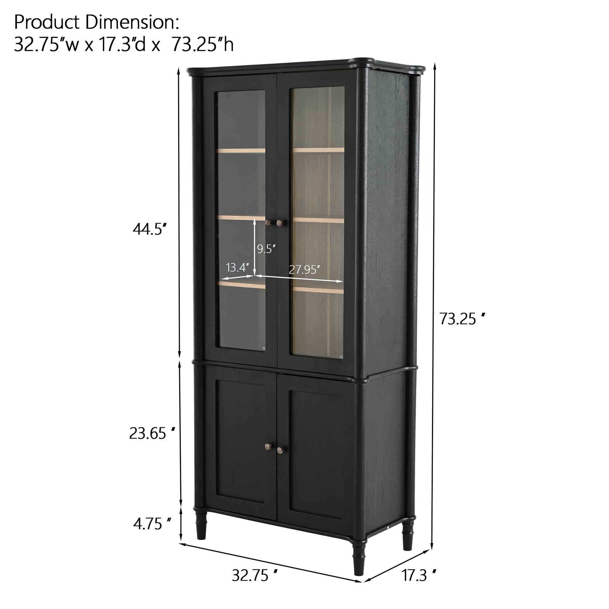 73.25''H Vintage Display Cabinet, Mid-century Modern Bookcase with Glass Doors, Curio Cabinet with Natural Ash Wood Grain, for H