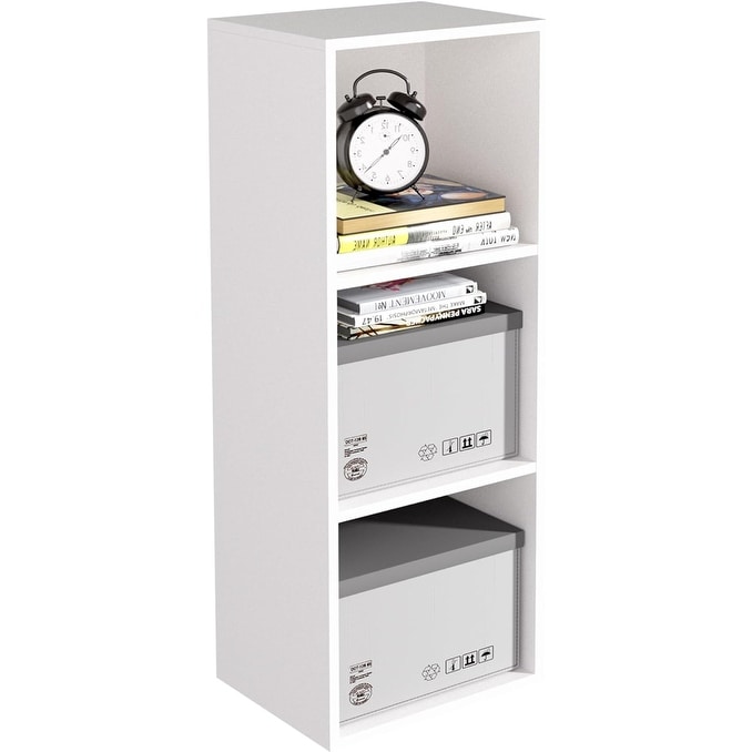 3-Tier White Wooden Storage Cube Organizer with Versatile Design for Home & Office (11.8inch)