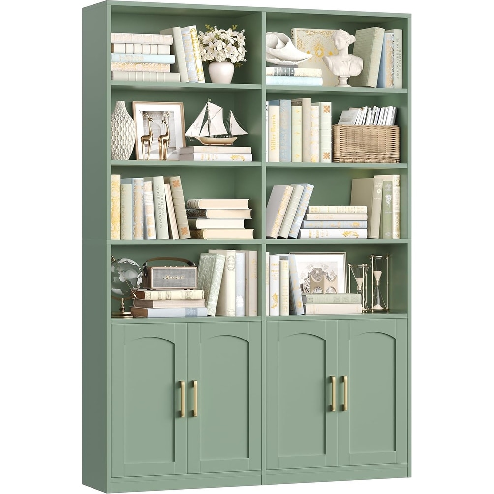 6 Tier Double Wide Large Bookshelf with Doors and Storage Cabinets, 73'' Tall, Green, for Home Office, Living Room, Library