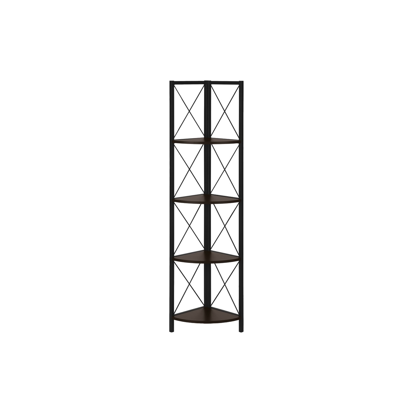 Bookshelf, Bookcase, Etagere, Corner, 4 Tier, 60"h, Office, Bedroom, Laminate, Metal, Contemporary, Modern