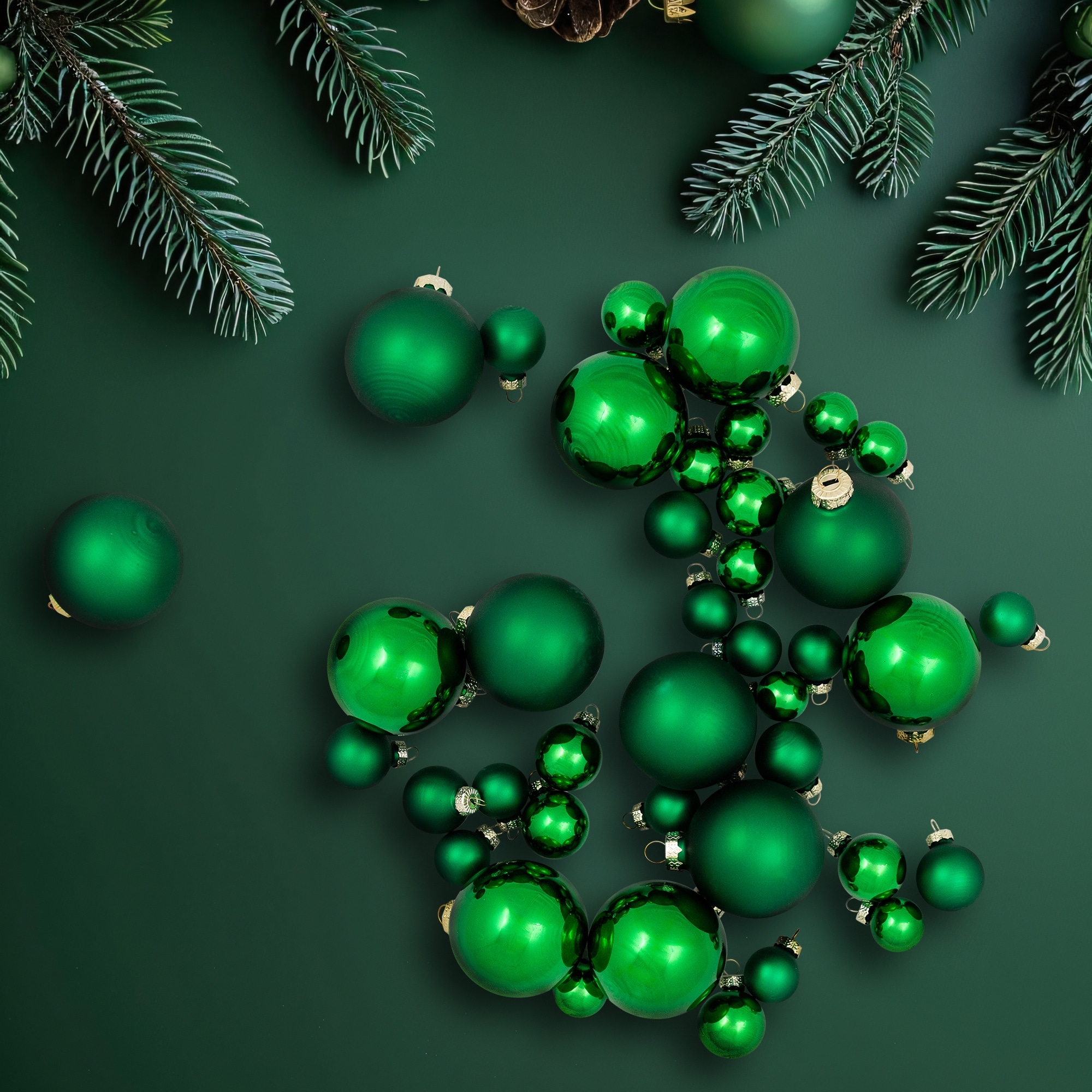 Shiny and Matte Multiple Size Glass Ball Christmas Ornaments - 2.5" - Green - 40ct