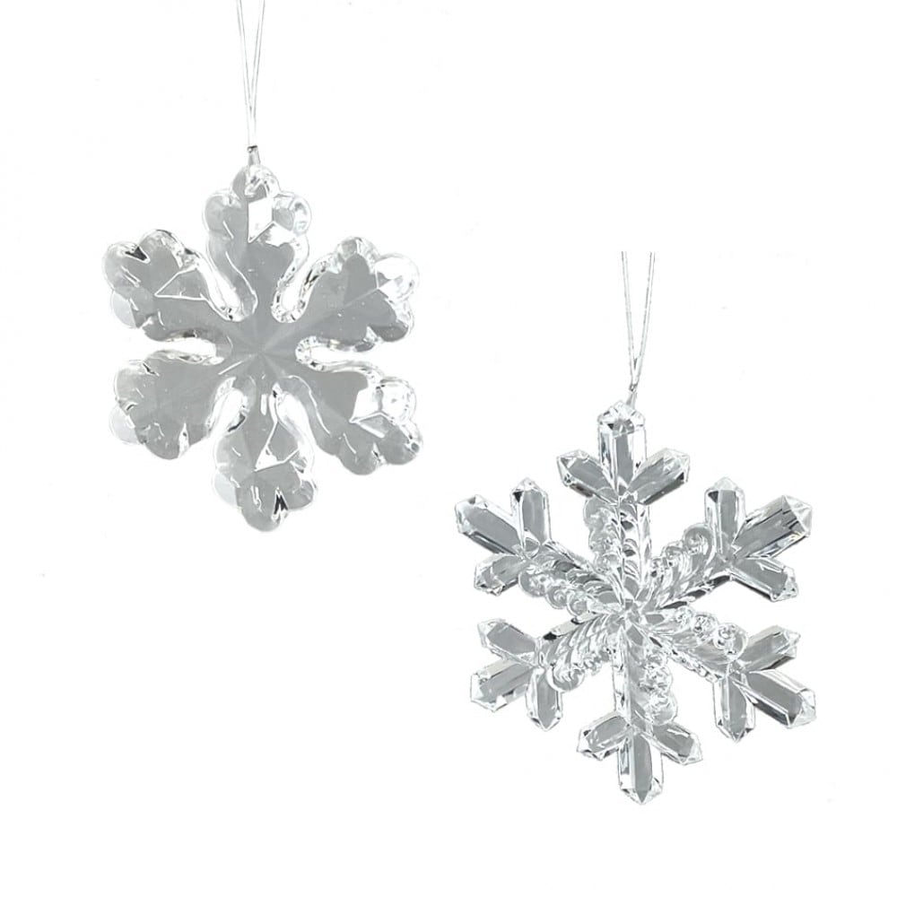 Set Of 2 Assorted 4" Clear Snowflake Ornaments