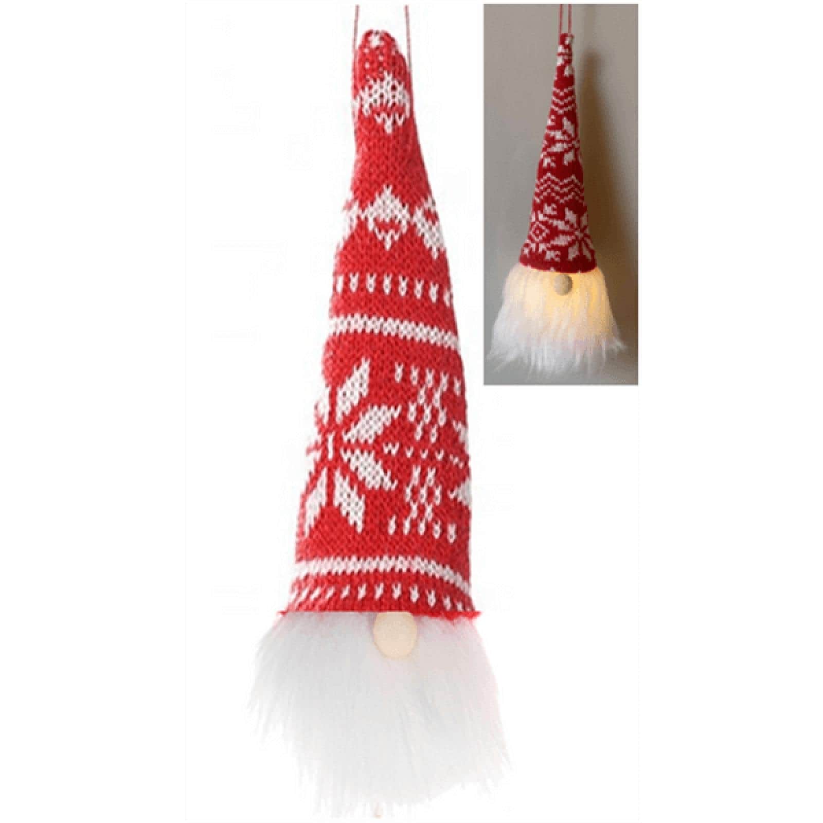 Led Hanging Gnome With Nordic Pattern Hat Ornament