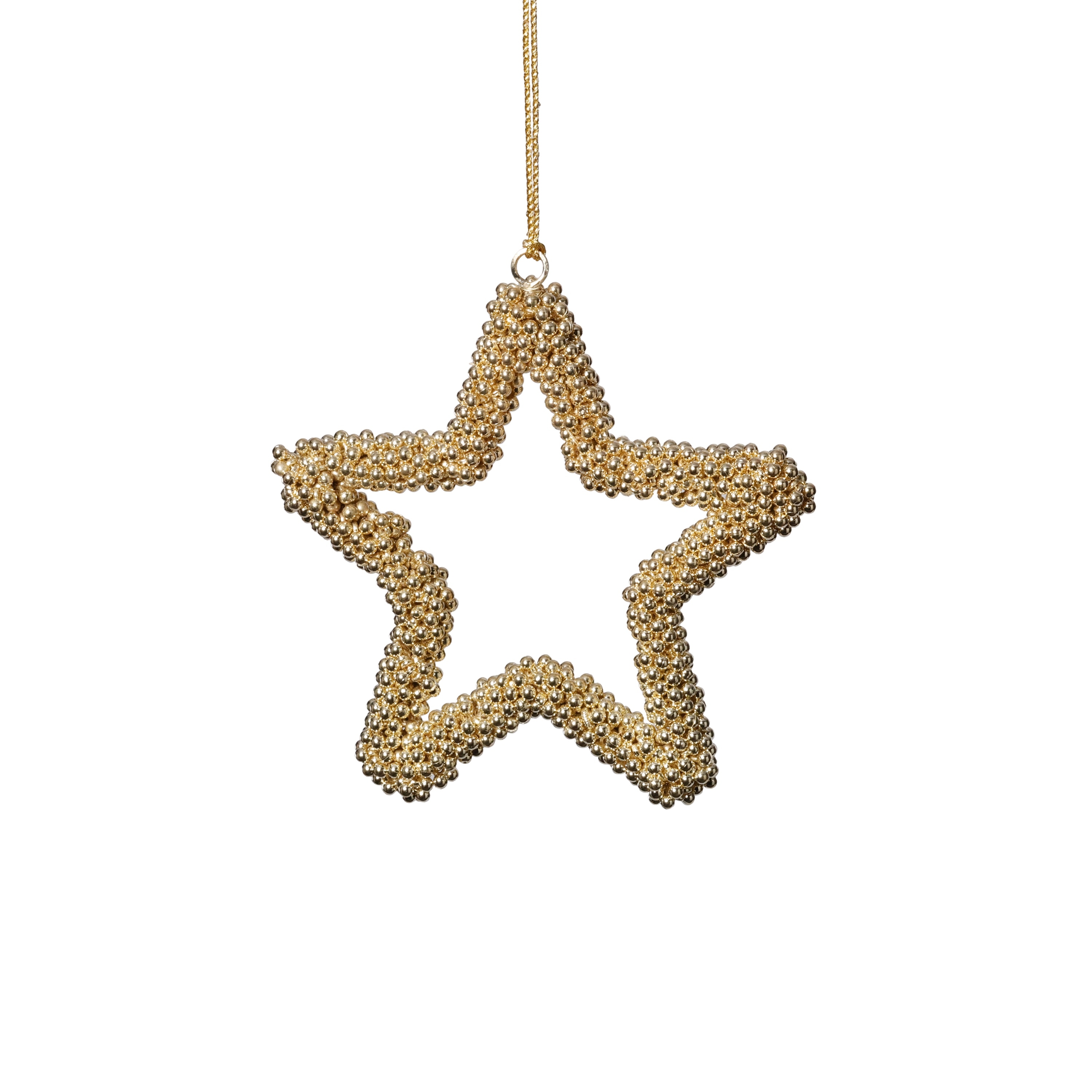 Golden Pearl Star Christmas Hanging Ornaments, Set of 12, 5"