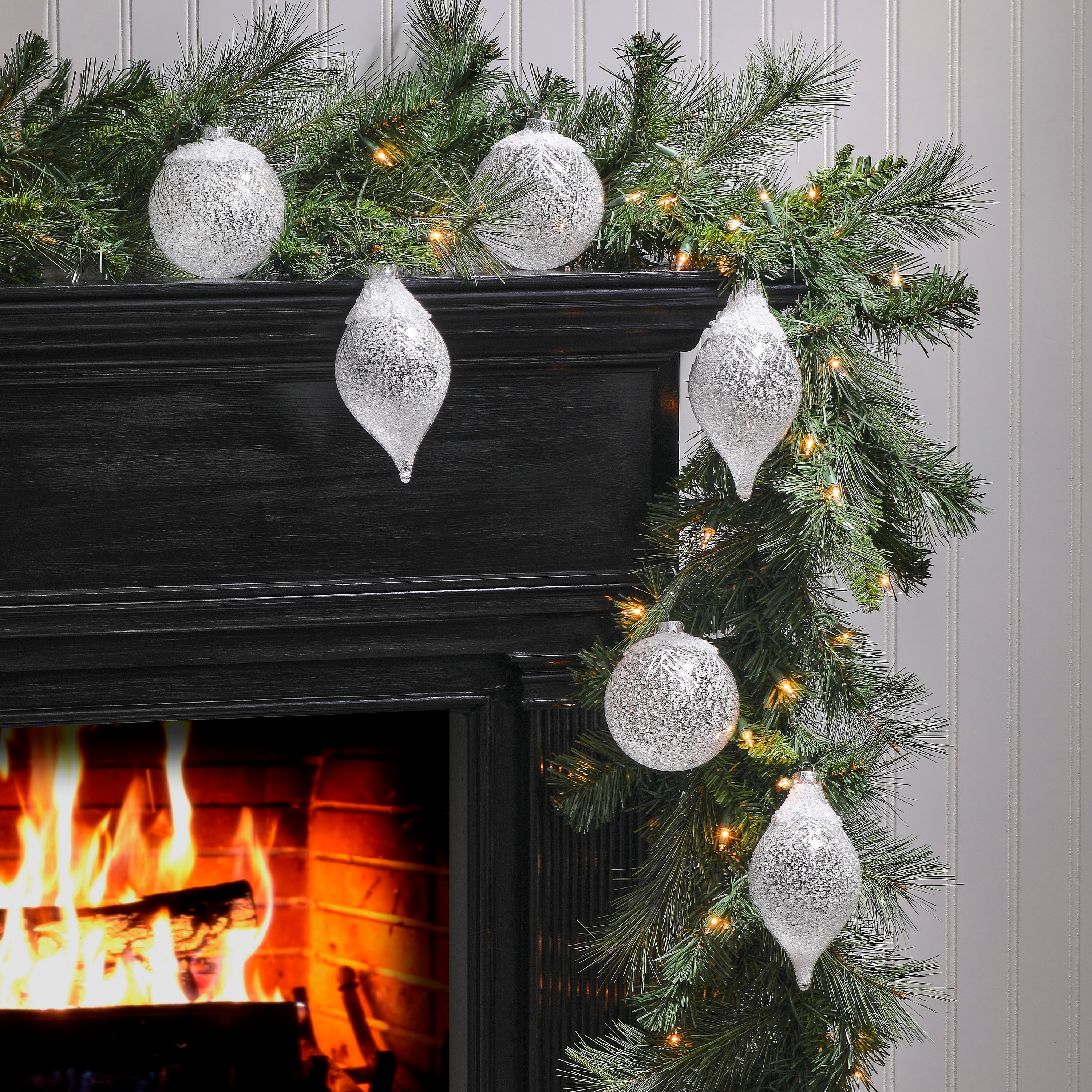 Beaded Glass Drop Christmas Ornaments - 6.5” - Silver - 6ct