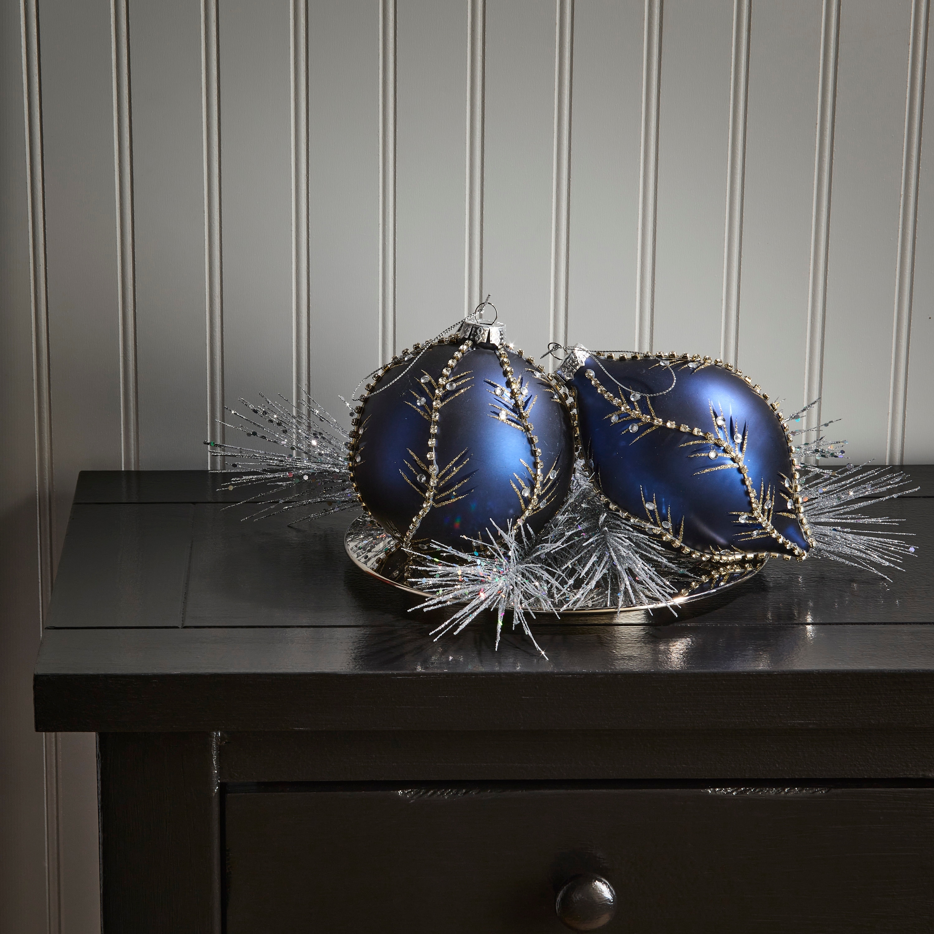 5-6.5" Glass Jewel Glitter Ball and Finial Ornament Set of 6