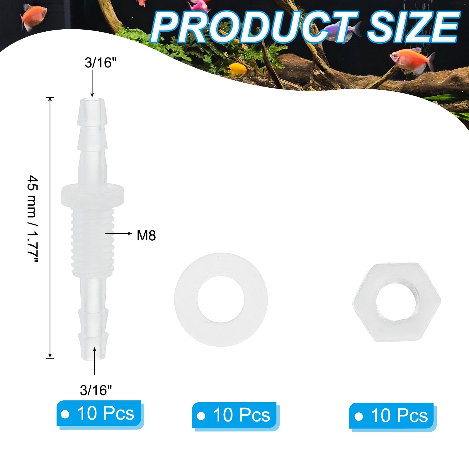 Barb Thru-Bulk Bulkhead Fittings, Union Plastic Adapter Fittings with Silicone Washers