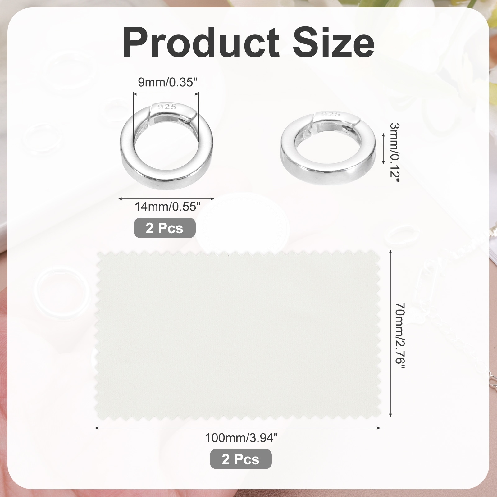10mm 925 Sterling Silver Spring Gate Rings, 2Pcs Plat Round Clasps, Silver Tone - Silver Tone