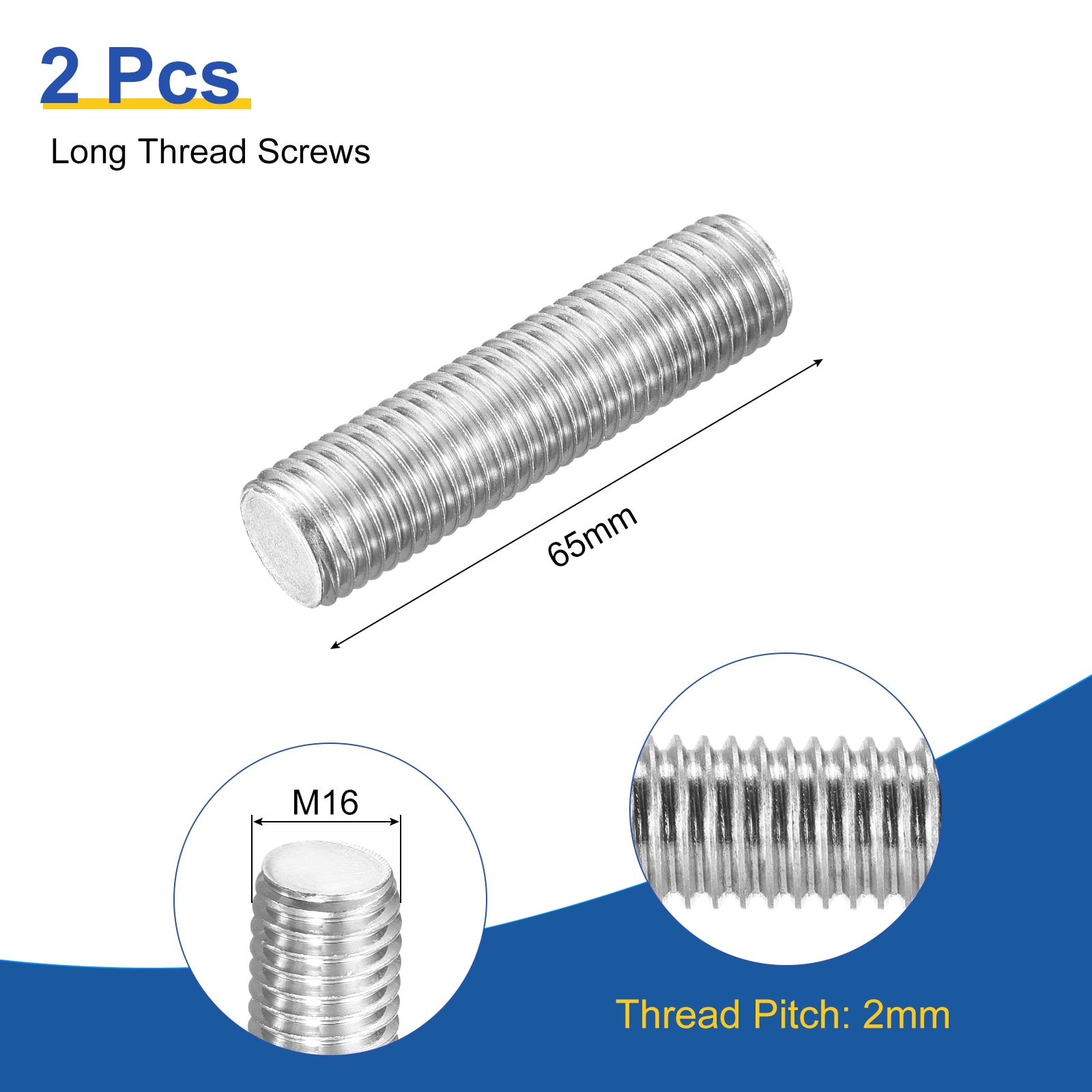 Fully All Threaded Rod, 316 Stainless Steel Long Threaded Screw Thread Pitch Right Hand Threads for Assembly Fastening