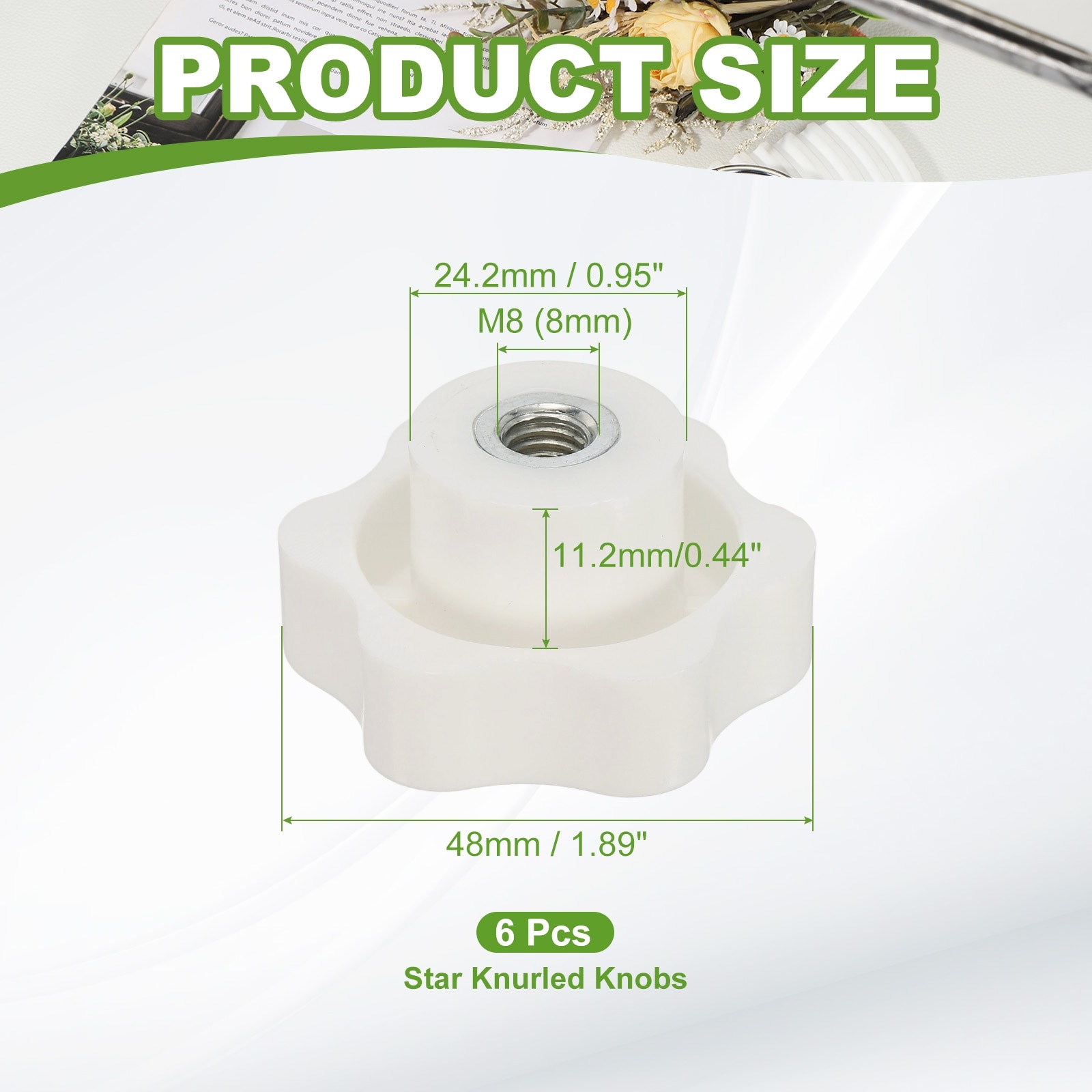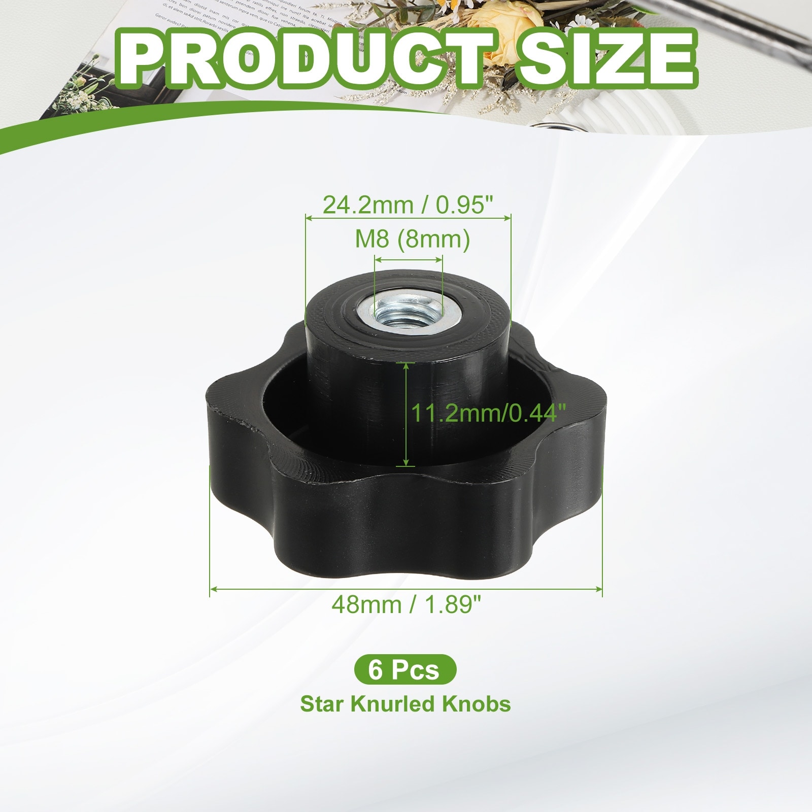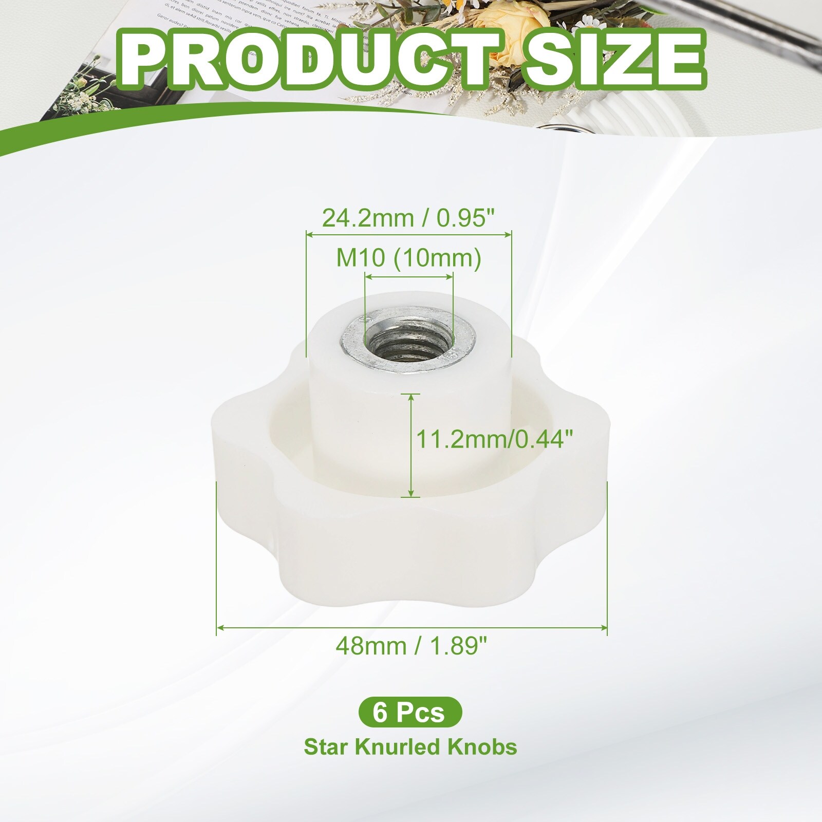 Clamping Nuts Knob Plastic Screw-On Iron Star Knobs Knurled Female Threaded Hexagon Head, Head Diameter Fit for Handle Machinery