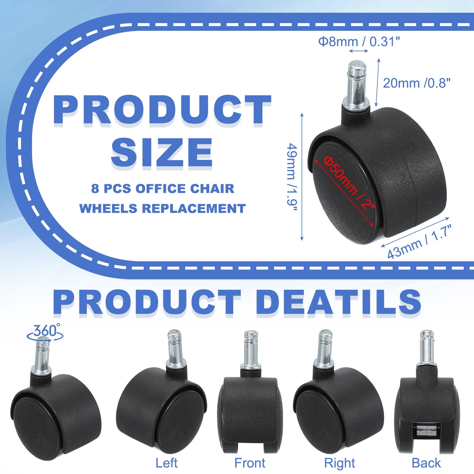 Office Chair Wheels Replacement, Nylon Heavy Duty Office Furniture Caster Wheels with Universal Wheel for Hardwood Floor Carpet