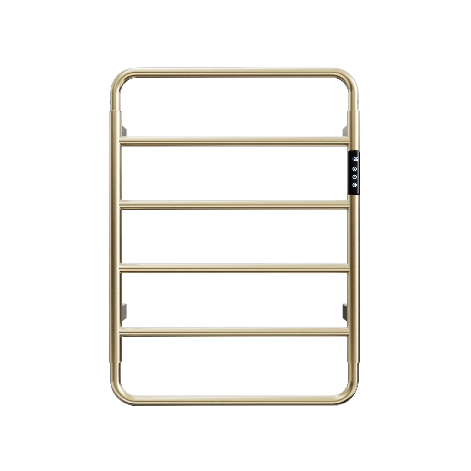 18.7" Brushed Gold Heated Towel Rack, 6-Bar Wall Mounted with Touch Timer - 18.7”W x 25.2”H