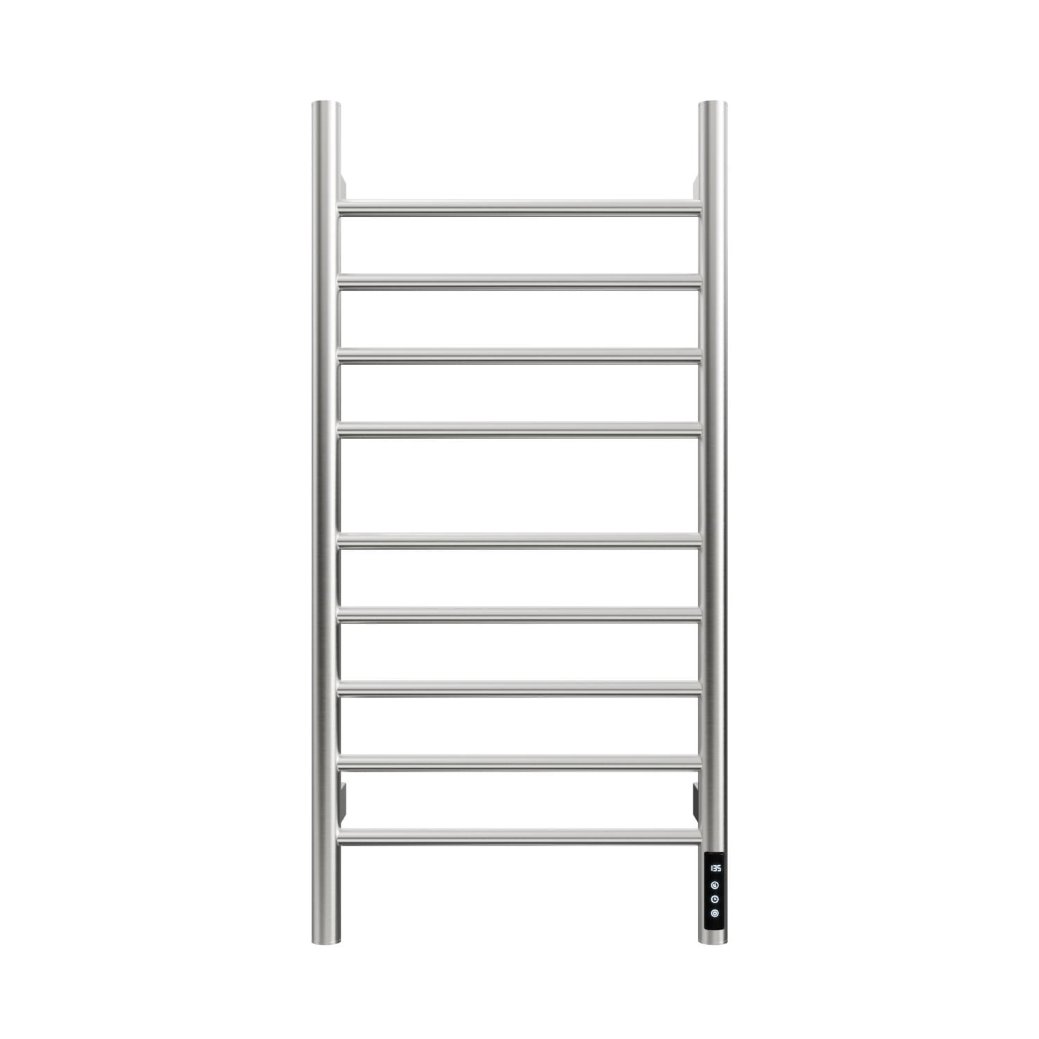 Wall Mounted 9-Bar Heated Towel Rack Brushed Nickel Intelligent Touch Timer Stainless Steel - 17.8”W x 35.7”H