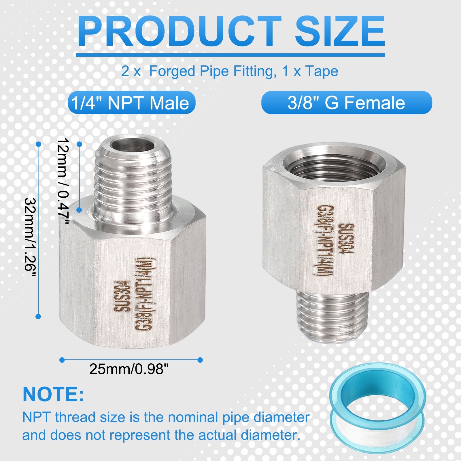 Forged Pipe Fitting, Female to Thread Adapter Hex Pipe Fitting Adapter for Hose Line Connection Convert - Silver