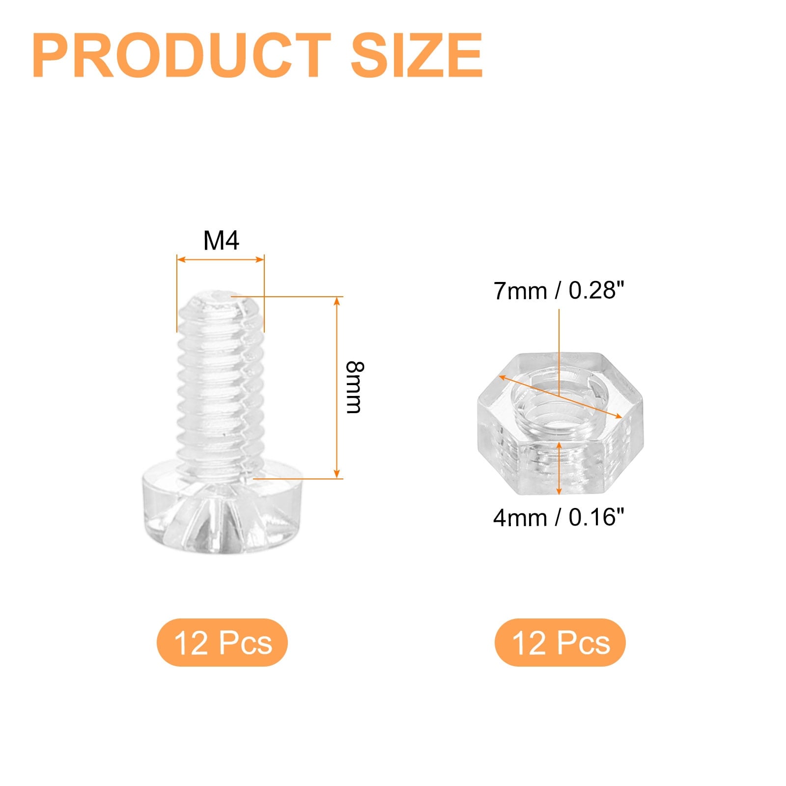 Clear Acrylic Screws Kit, Round Head Phillips Bolts with Hex Nuts, Bolts and Nuts Kit for Machine Accessories