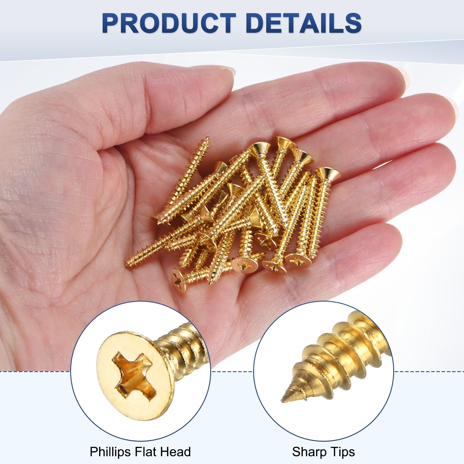 Brass Wood Screws, Slotted Drive Flat Head Self Tapping Screw Countersunk for Furniture - Gold