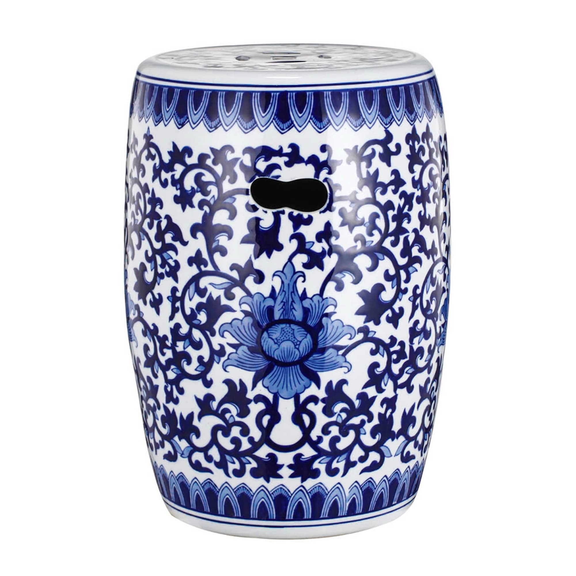 Floral Porcelain Garden Stool - 11.25" - Blue and White