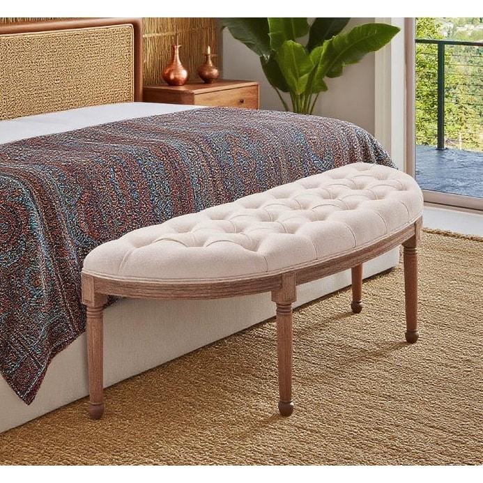 Semi-Circle End of Bed Bench with Tufted Design, Upholstered Bedroom Entryway Bench