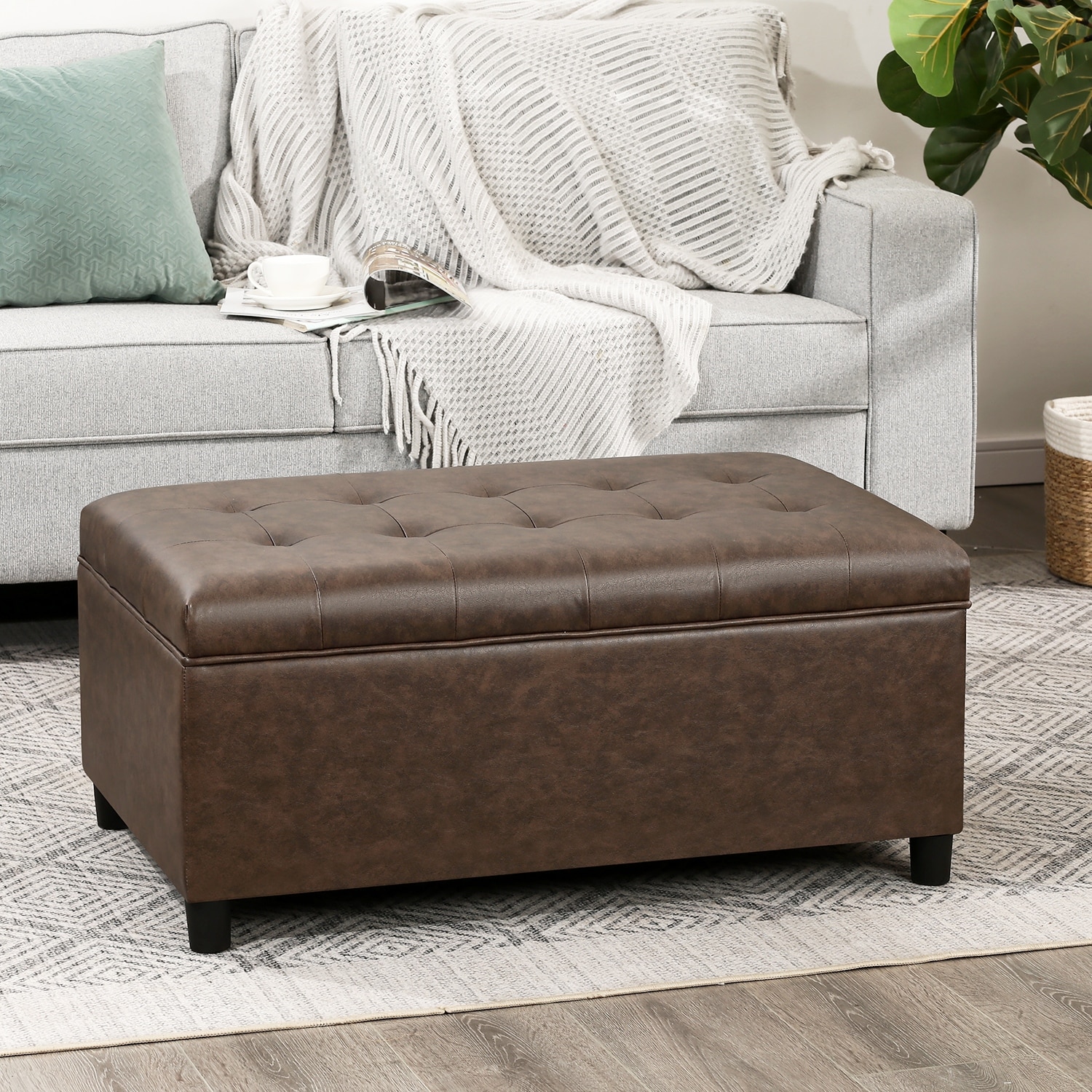 Adeco 35" Tufted Rectangular Storage Ottoman Bench