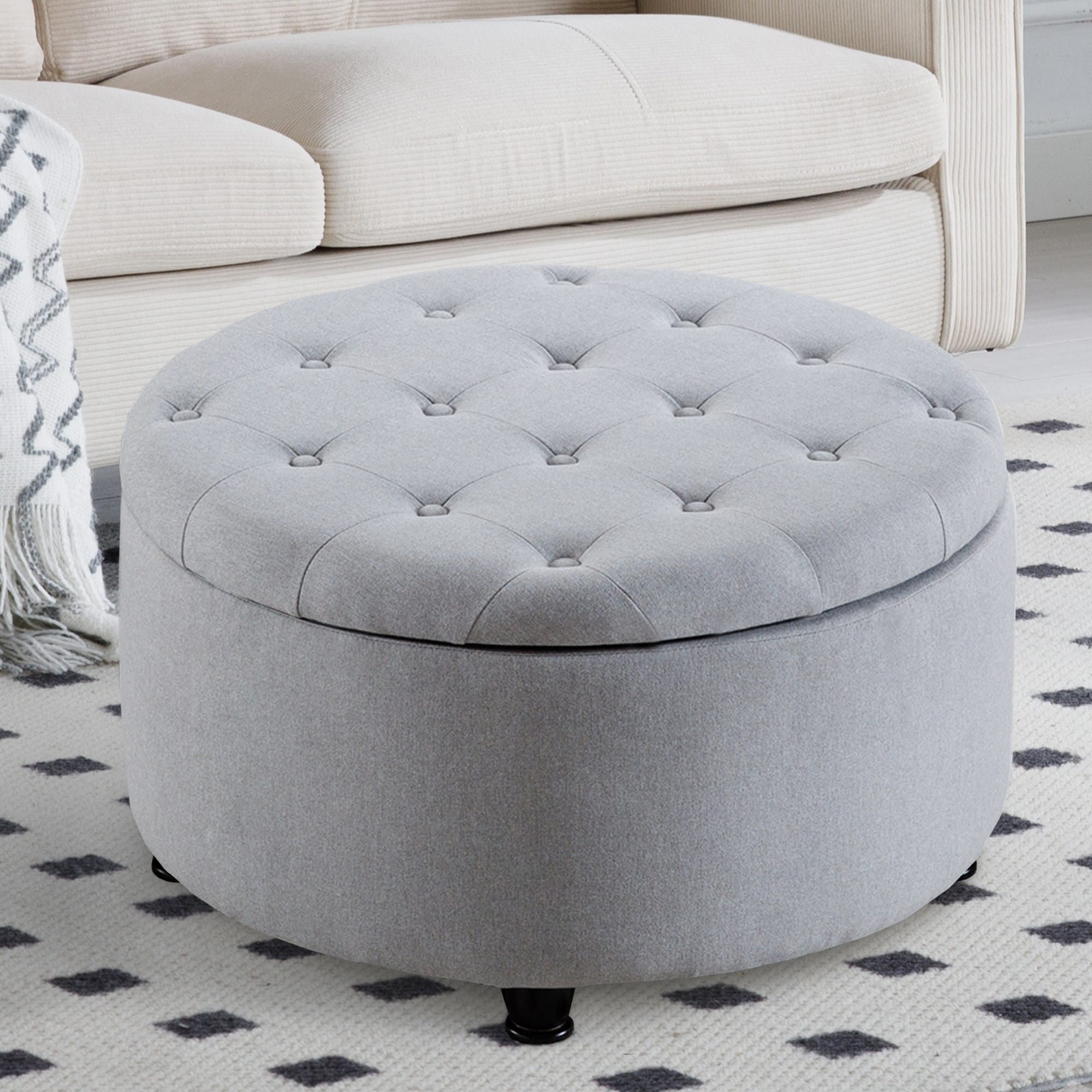 HOMYKA Linen Tufted Round Storage Ottoman Upholstered Foot Rest
