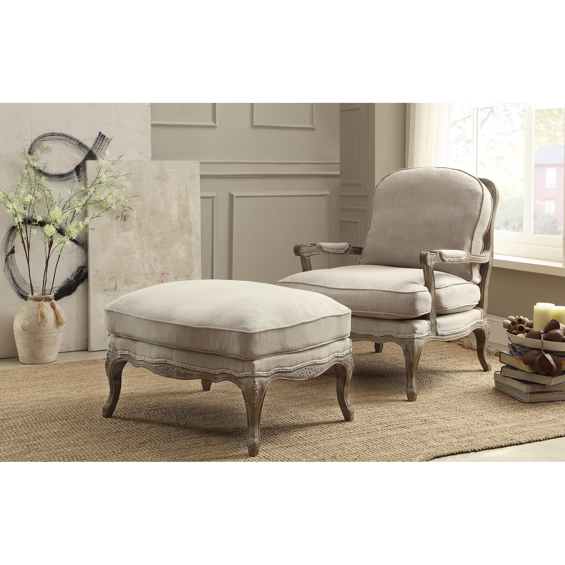 Living Room Furniture Ottoman Dorris Fabric 1pc Cushion ottomans Wooden Legs