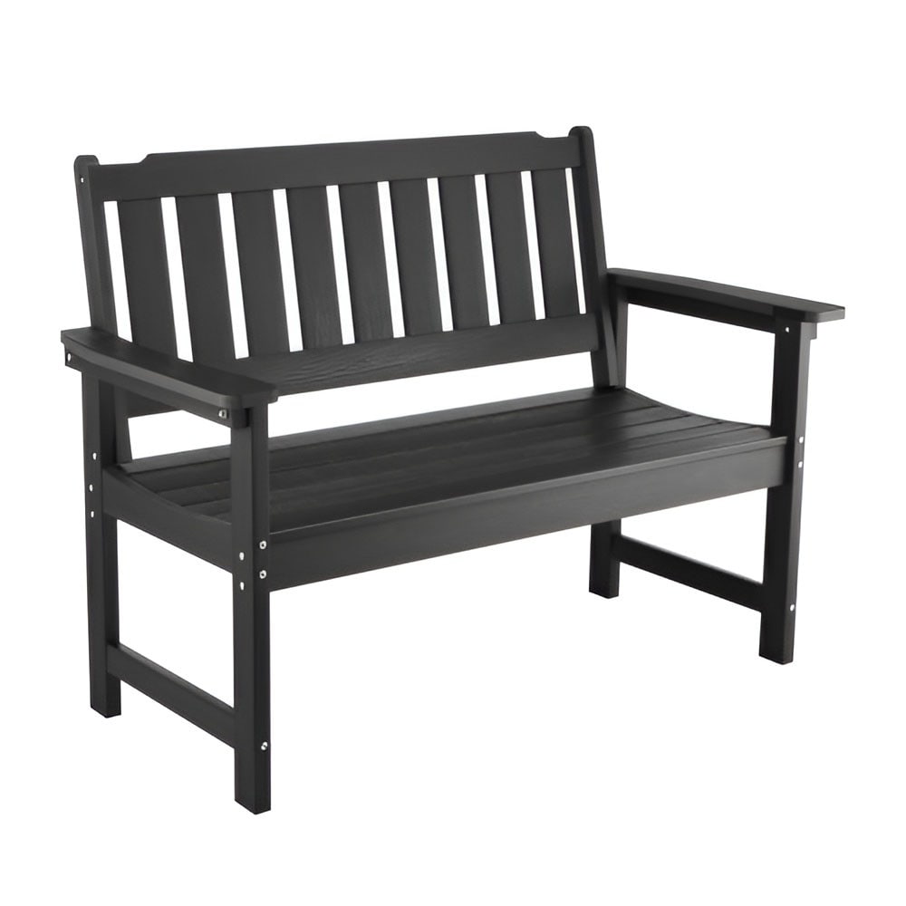 50.5-Inch Black Outdoor Bench with Backrest Armrests for Porch Patio Garden and Backyard Relaxation - 50.5” x 24.4” x 36.6”