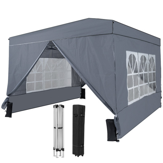 Costway 10 X 10 FT Pop up Canopy Tent Outdoor Patio Commercial Sunshade Shelter with 4 Sidewalls-Gray