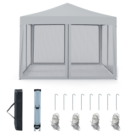 Costway 10 x 10 FT Outdoor Pop up Canopy Tent Easy Setup Gazebo Shelter with Wheeled Bag-Gray