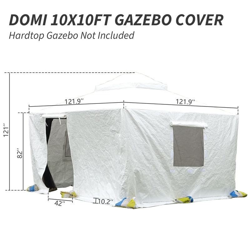 Domi 8' x 8' Universal Winter Gazebo Cover, All Season Waterproof Enclosed Cover with Sidewalls & Ventilated Mesh Windows, White