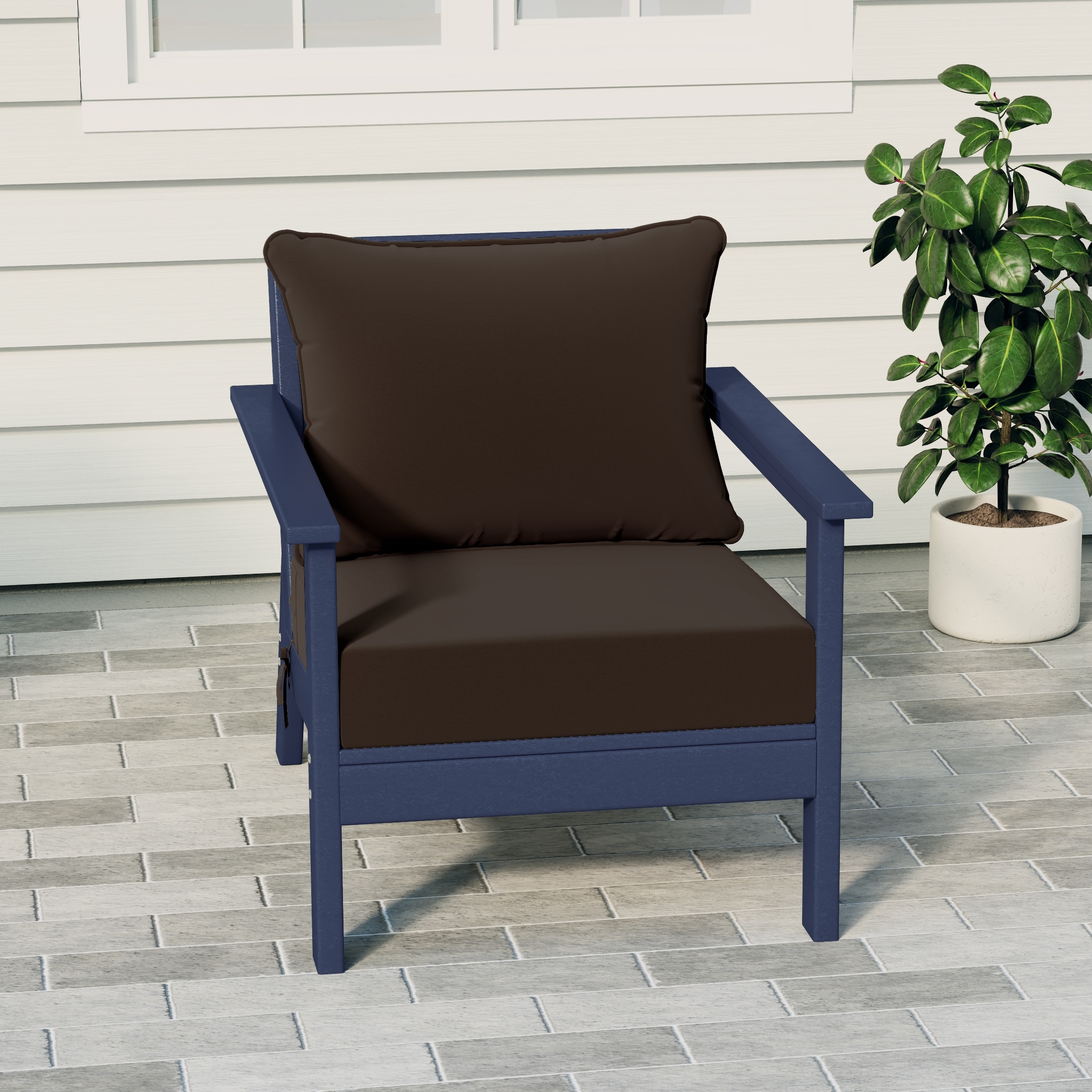 Birchwood All Weather HDPE Outdoor Patio Deep Seating Navy Blue Club Chair With Cushions (1-Piece)