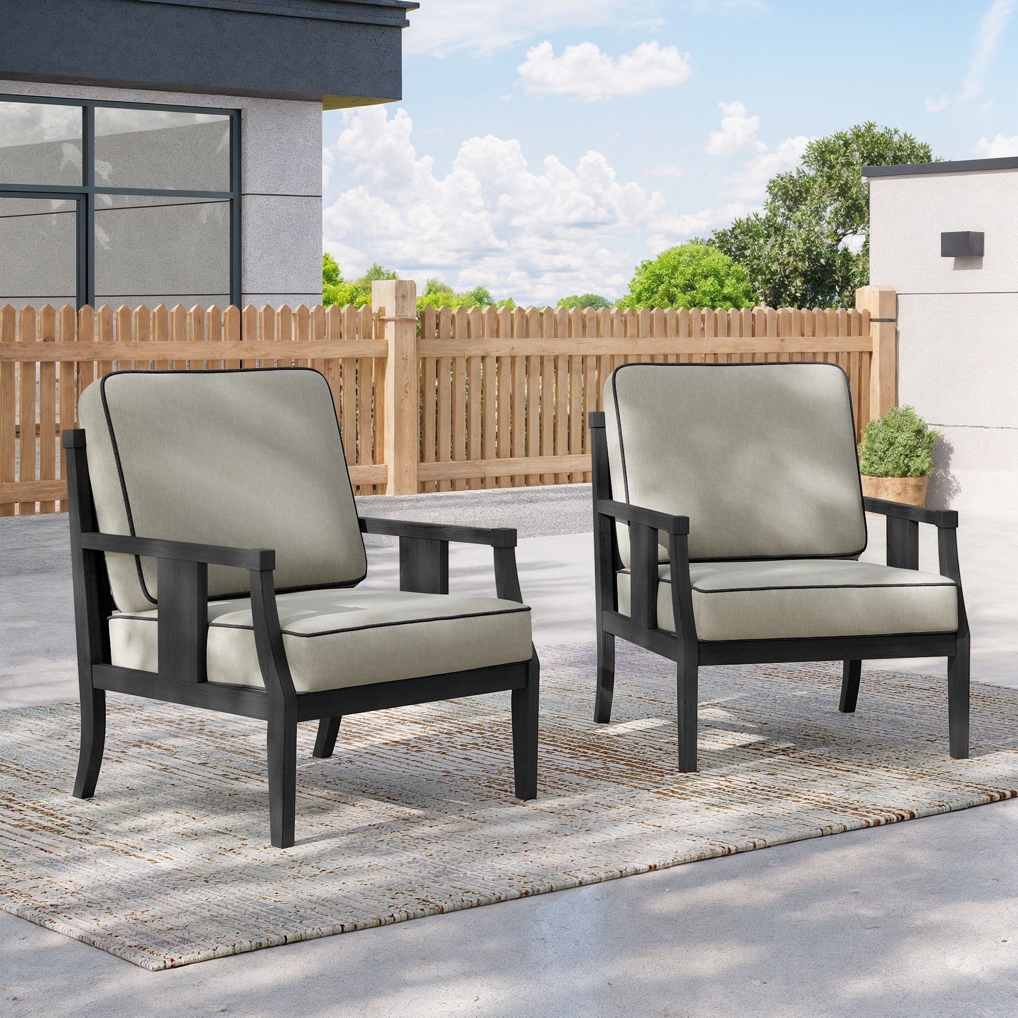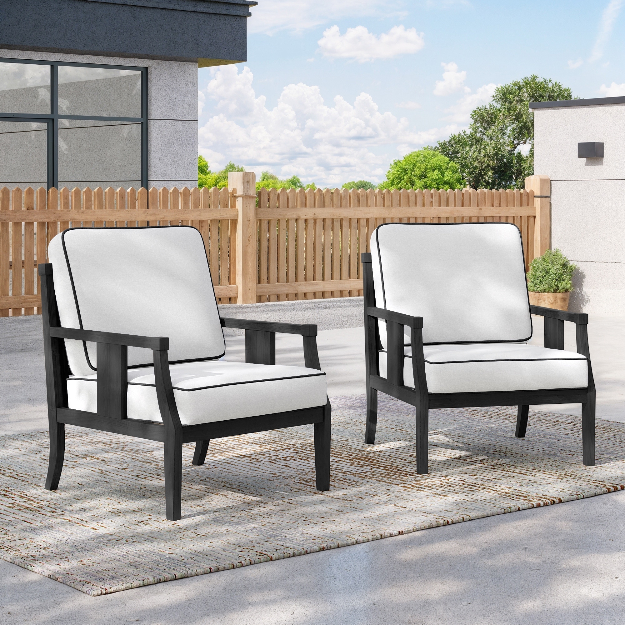 2 Set Outdoor Wooden Club Chairs with Cushions