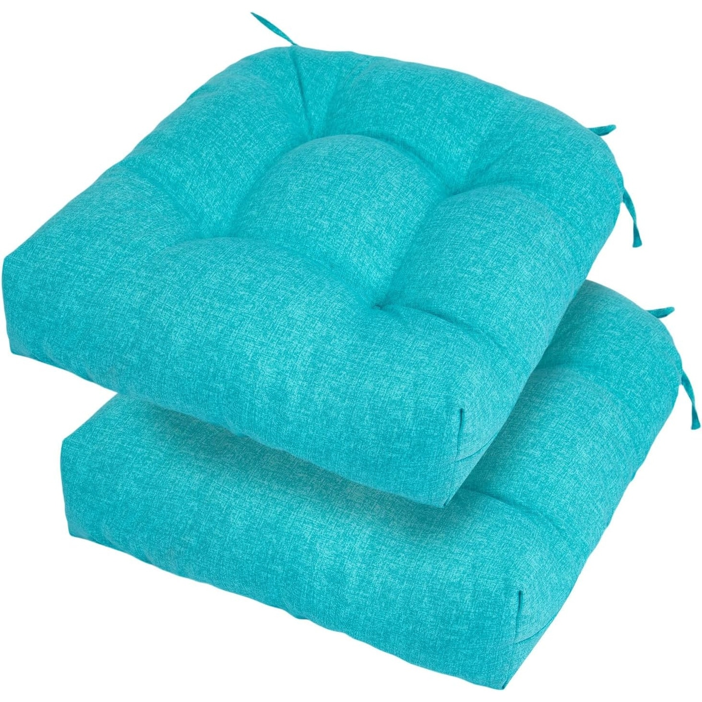 Set of 2 Water Repellent Tufted Outdoor Chair Cushions, 19x19x5 Inch, Aqua Blue, for Patio, Rocking, and Camping Chairs