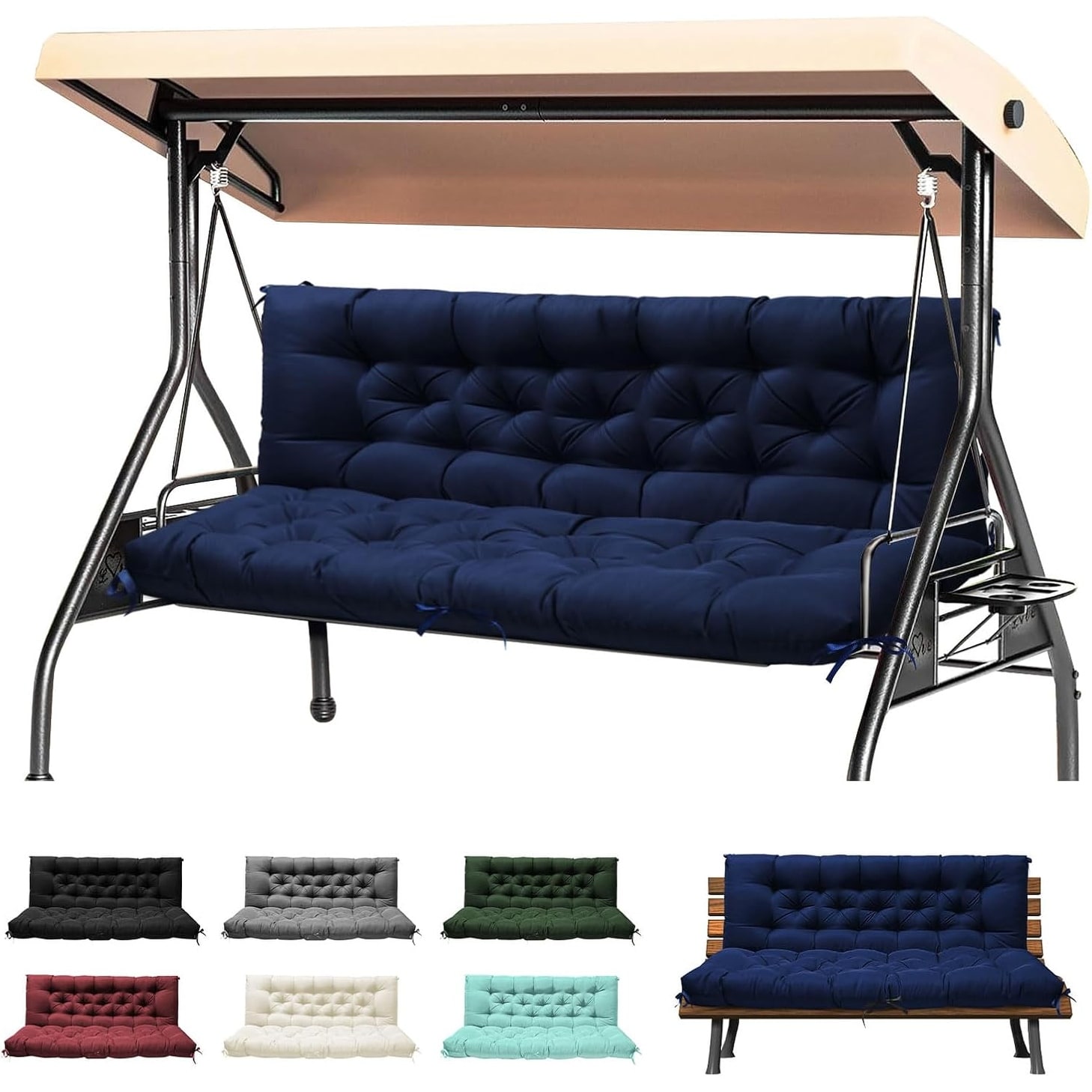 Waterproof Outdoor Porch Swing Cushion with Backrest, Non-Slip Design, 60x40 Inches, Navy