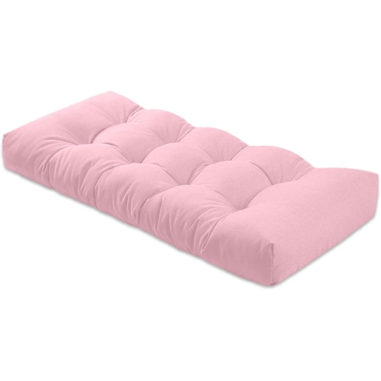 45-inch Non-Slip Tufted Bench Cushion, Waterproof Linen, Memory Foam, Light Pink