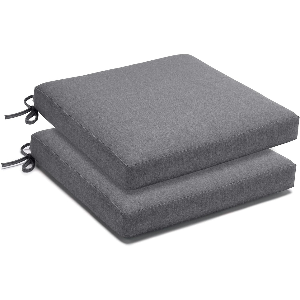 Set of 2 Square Outdoor Seat Cushions, 17x17 Inch Water-Resistant Patio Chair Cushions with Ties, Plump Polyester Filling, Gray