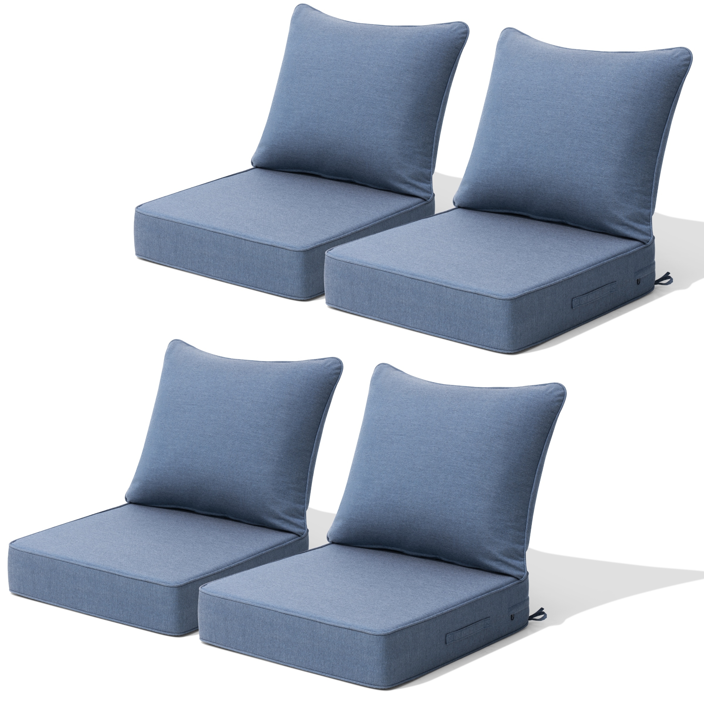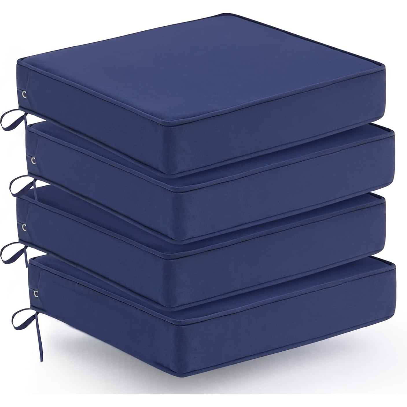 Waterproof Outdoor Chair Cushions Set of 4, Patio Furniture Cushions with Ties, 22 X 22 X 3 Inch, Blue