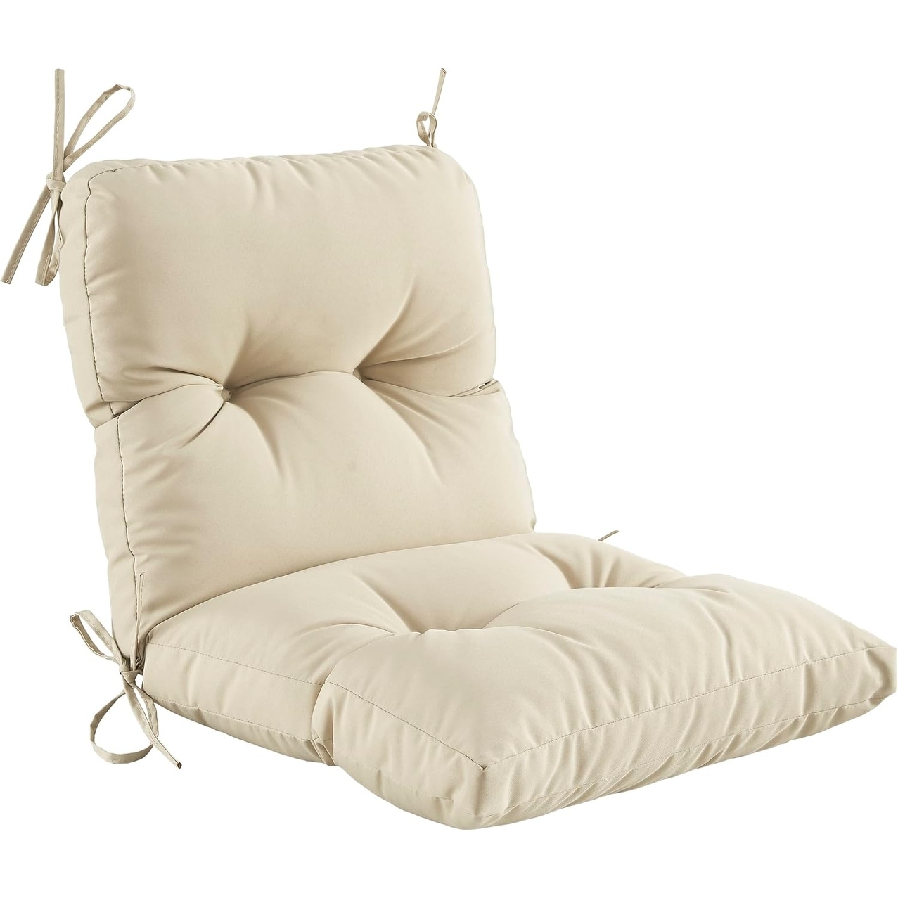All-Weather Patio Chair Cushion with Ties, Tufted Outdoor Indoor Seat/Back Cushion, Beige